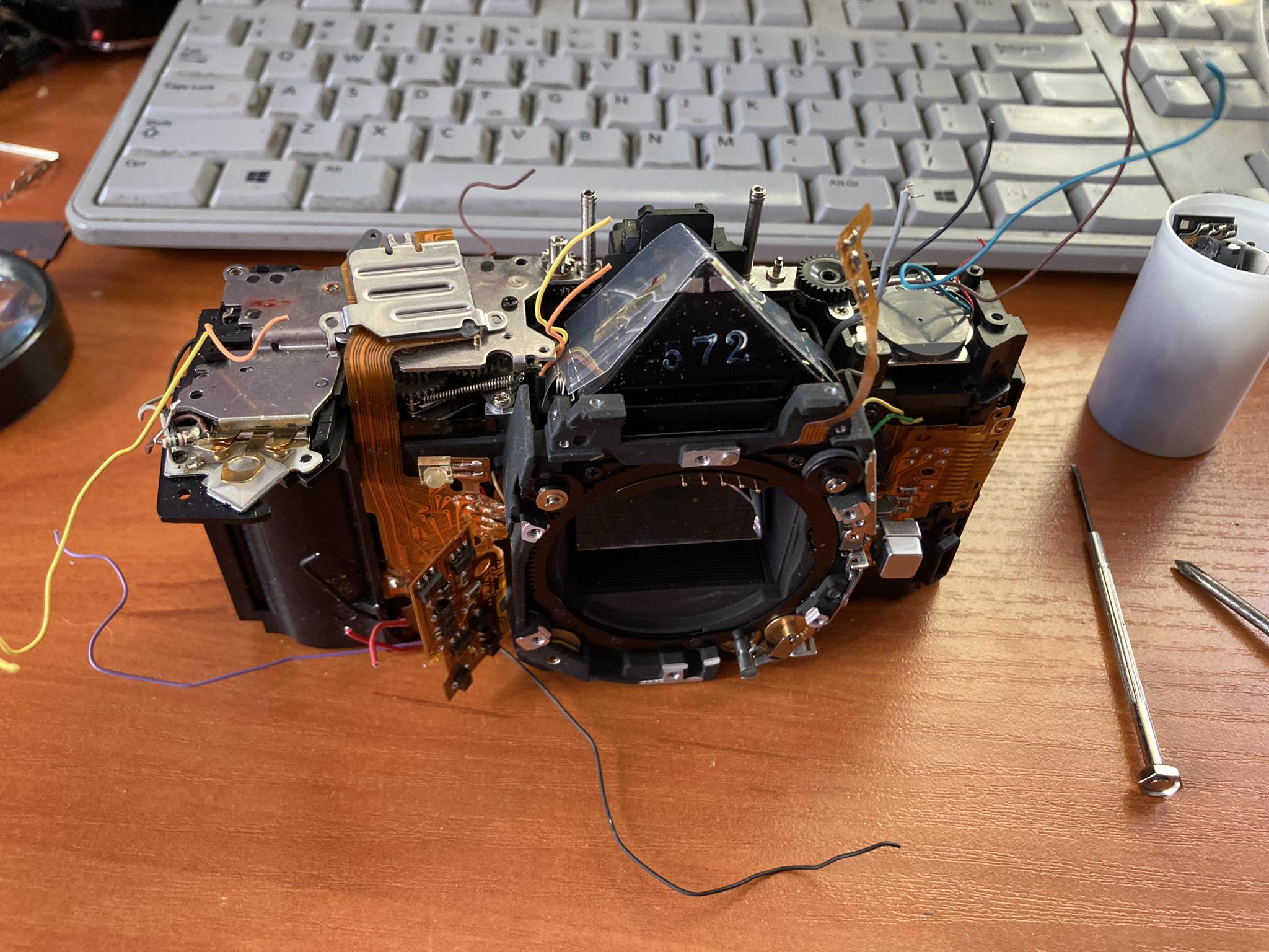 Przed rozbiórką aparat wyświetlał tylko mrugający napis "FILM" na wyświetlaczu. Mogło to wynikać z faktu, że poplątana migawka była zacięta gdzieś w połowie swojej drogi.