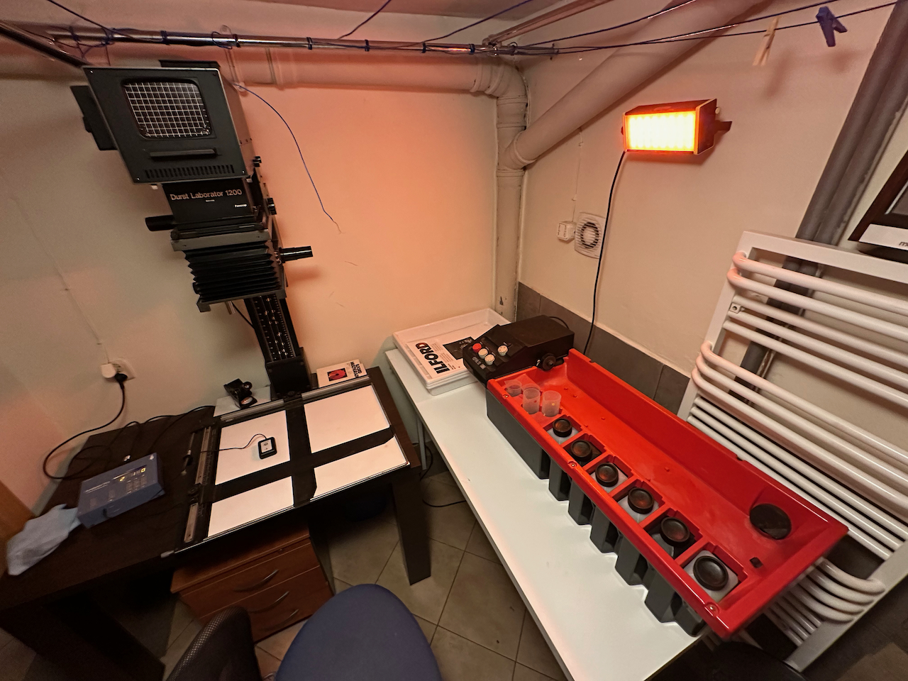 Przeprowadziłem się w kwietniu i musiałem na nowo urządzić ciemnię. Miejsca mam trochę mniej, ale udało się wszystko urządzić. Niestety trochę na raty, bo i zaciemnić trzeba było, i skombinować część mokrą z dostępem do wody, ale w końcu jest, i co tam - pochwalę się ;)