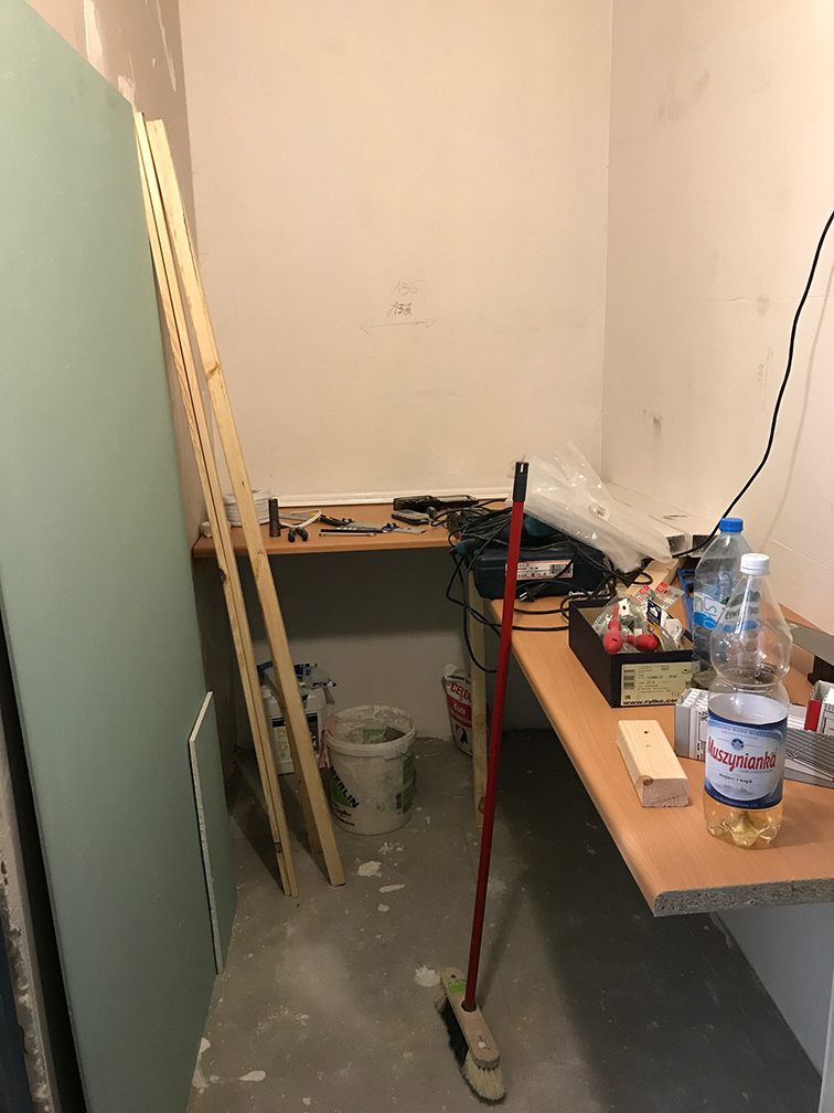 Myślałęm, że ogarnę ciemnię w 2-3 tygodnie, a już 2,5 miesiąca minęło. Na szczęście już prawie koniec. Jestem tym już trochę zmęczony, ale frajda i satysfakcja jest. Kilka rzeczy mi nie wyszło, kilka okazało się niewypałami i będę musiał prędzej czy później poprawić. Na chwilę obecną tak to wygląda