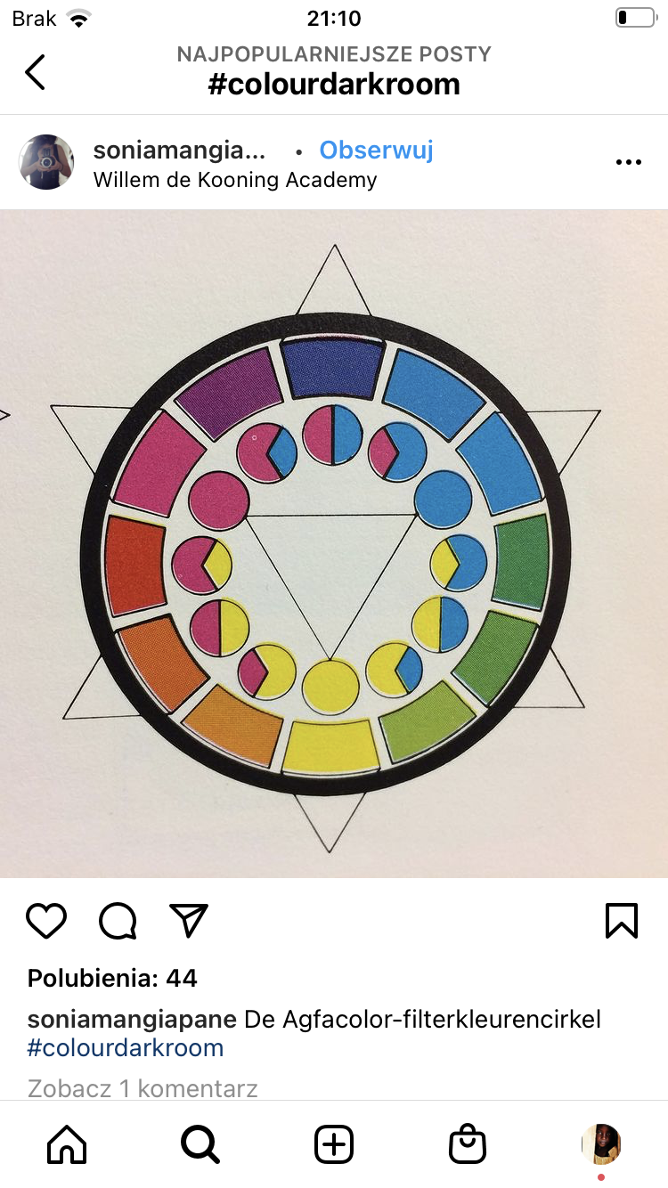 I teraz, jeżeli masz dwa filtry złożone po równo to masz zawsze kolor dopełniający, Y+C=G, ale jeżeli te same filtry są w różnych wartościach 20Y+10C to masz zielony z odcieniem żółci, 10Y+20C będzie zielony wpadający w błękit.