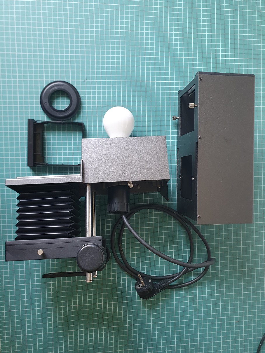 W komplecie pierścień SIRIOPLA (fi39), szufladka na filtry (75mm), żarówka Philips Photocrescenta 75W.
