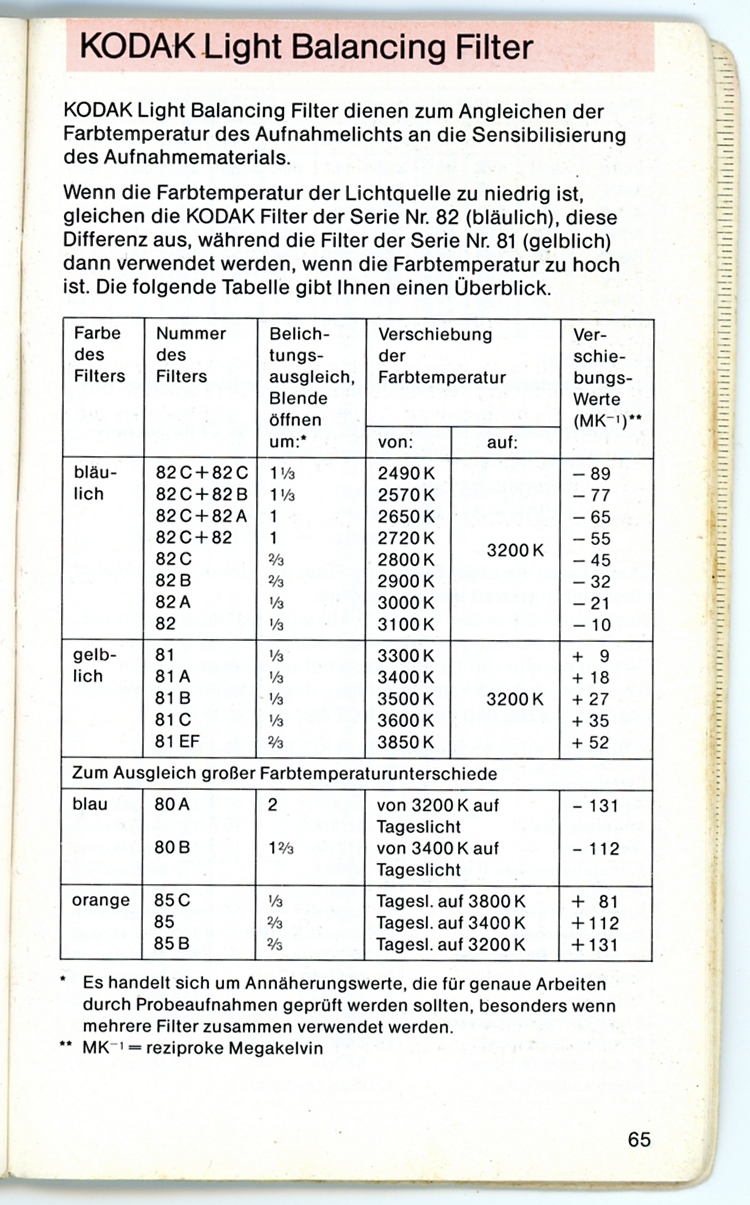 Przypomniałem sobie, że mam stary poradnik Kodaka, zawierający m.in. informacje o filtrach korekcyjnych.