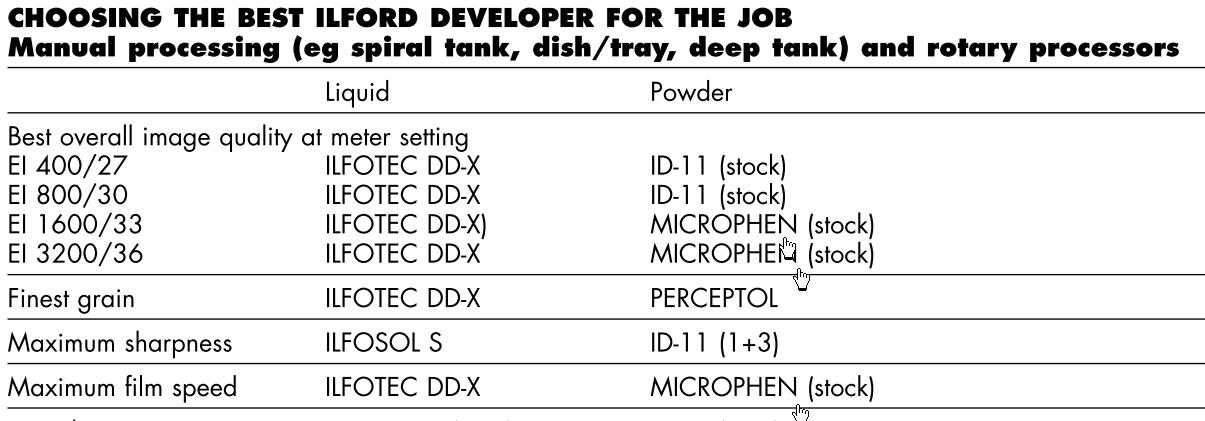 Wywoływaczem znanym z bardzo dobrego wyzyskiwania czułości jest Microphen, zalecany przez Ilforda do wywoływania negatywów naświetlonych powyżej ich nominalnej czułości i sprawdzony w takiej roli (z pozytywnym wynikiem) przez rzesze fotografujących.