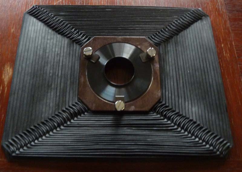 Ponieważ wszedłem w posiadanie takowego miecha, więc mam pytanie czy jest to jakaś samo-produkcja do aparatu czy coś oryginalnego czy może miech od jakiegoś powiększalnika. Wymiary 27,5x22 [cm] oraz 10x10 [cm] średnica otworu 3,8mm i wysokość po rozłożeniu 27 [cm].