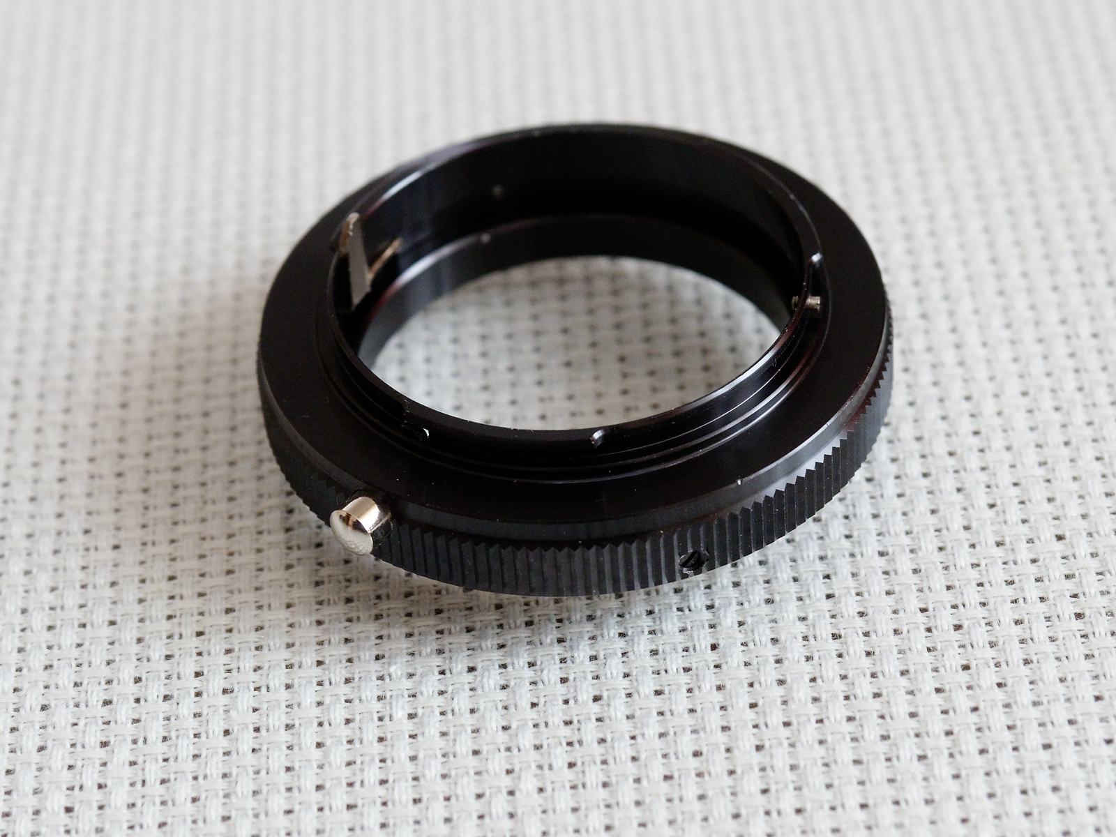 - nieużywany pierścień odwrotnego mocowania obiektywu (bagnet OM / gwint M49).