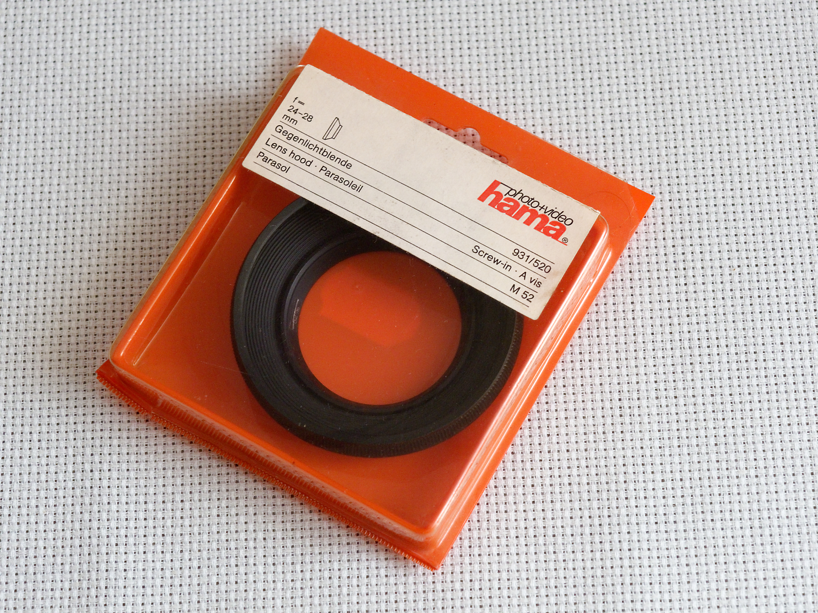 - gumową, nieużywaną osłonę przeciwsłoneczną przeznaczoną do obiektywów o ogniskowej 24-28 mm, z mocowanie M52 (nada się do obiektywu będącego w zestawie),