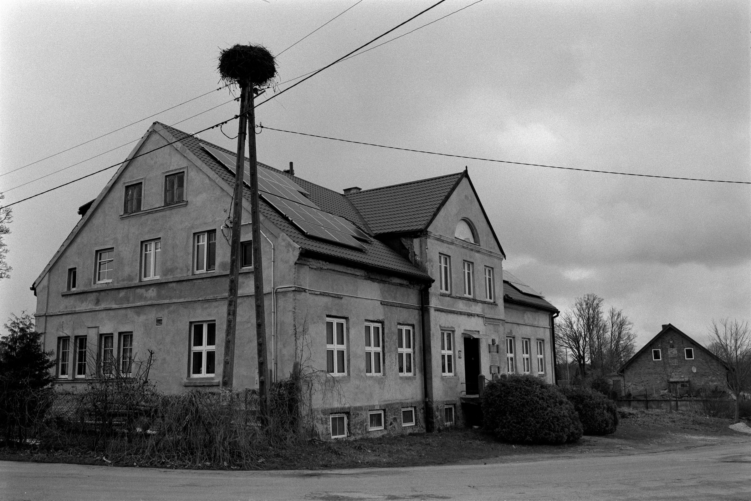 Wczoraj testowo przestrzeliłem kilkanaście klatek tego (nowego dla mnie) filmu. Jestem na początku mojej kalibracji z tym negatywem. Naświetlałem na nominalne ASA 100. Wywoływacz Kodak D-76 (stock przygotowany w lipcu, zagazowany) 1:1, 21°C, 9 min., 60/60x3. Oczywiście wczoraj było marcowo, od słońca przez dziury w chmurach, po ciężkie obłoki i porywisty wiatr ze śniegiem. Niestety, nie miałem filtra połówkowego dla zaciemnienia nieba, za to założyłem filtr pomarańczowy. Poniżej zamieszczam przykładowe fotki, skan DSLR, odwrócenie i wstępna obróbka w Darktable (moduł NegativeDoctor). Nie ruszałem cyfrowych opcji (kontrast, cienie i światła, itd.), starałem się pokazać te obrazki w takim stanie, jak one wyglądają naturalnie. Proszę o sugestie, co mogę tu zmienić, żeby osiągnąć lepsze wyniki.