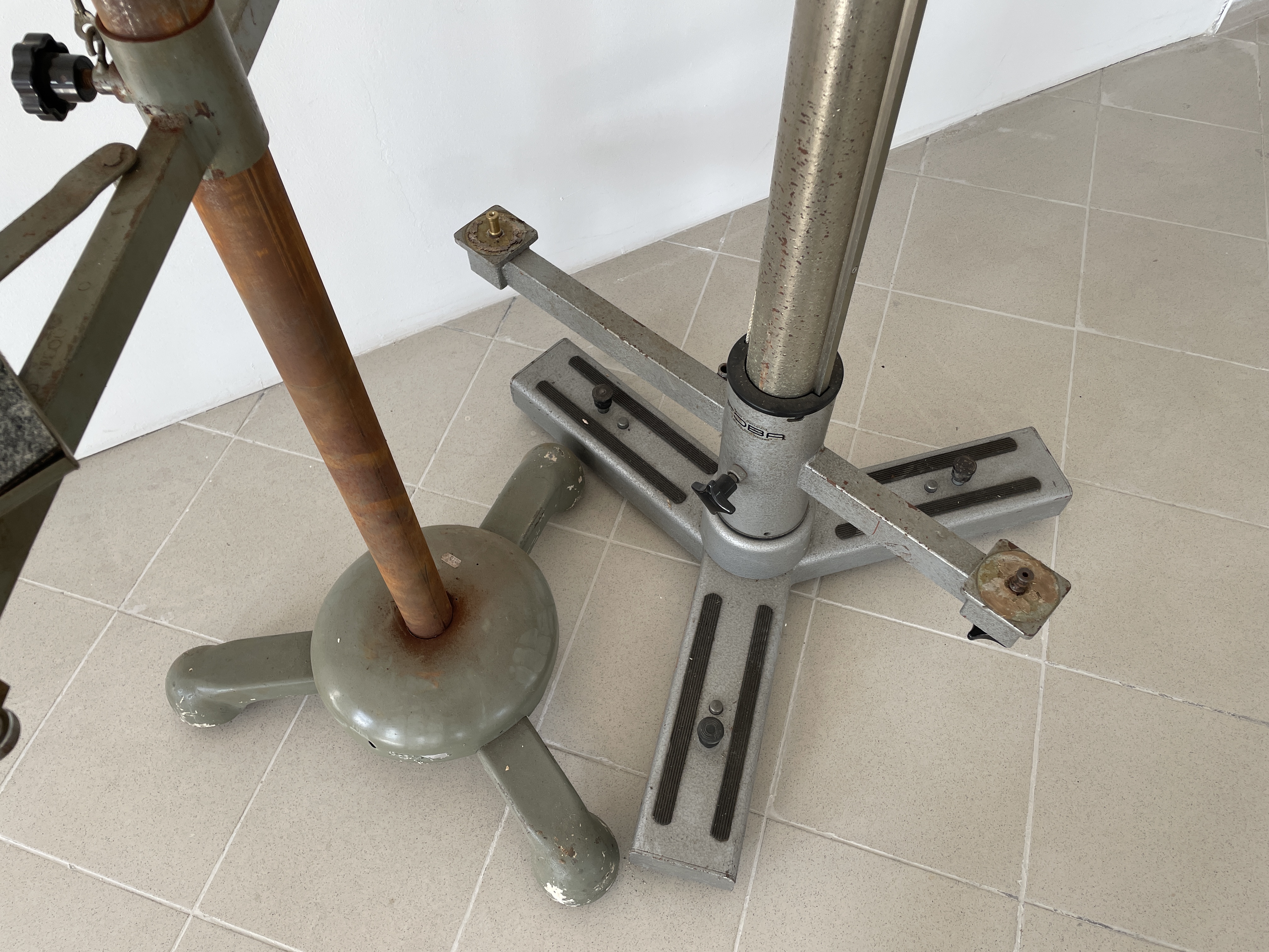 Ze względu na zmianę lokum mam do oddania dwa stare statywy kolumnowe na kółkach. Wymagają czyszczenia i smarowania, ale jeszcze spokojnie nadadzą się do użytku. Wysokość około 190 cm.