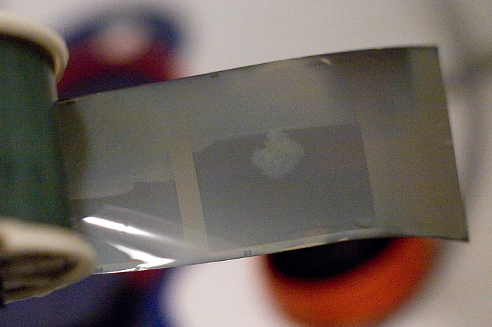 Zalaczam zdjecie pokazujace jak film wyglada w tej chwili. Na poczatku jest kawalek ciemnej plamy (nie wiem czy to niedoutrwalony fragment, czy cos sie zaswietlilo) - ale na poczatku caly film byl mniej wiecej taki jak ta ciemna plama.