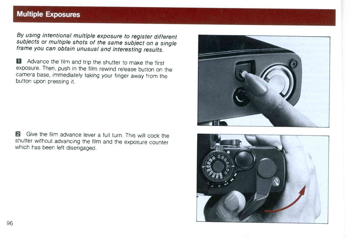 Contax w modelu RTS II też udostępnił wielokrotną ekspozycję poprzez wciśnięcie przycisku powrotnego zwijania, aczkolwiek bez konieczności trzymania go w czasie napinania migawki.