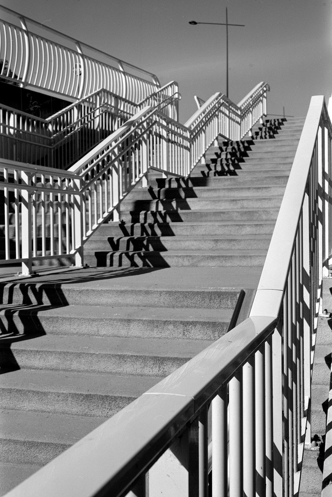 Film to Fomapan 100. Naświetlony na 80 EI, co pewno nie ma znaczenia przy starych migawkach. Wywołany w Rodinalu, mieszałem 30 sekund na początku, potem 15 sekund każdej minuty, czyli 50% więcej niż zaleca Foma. To ostatnio mój ulubiony sposób wywoływania. Niemniej nie oczekiwałem aż takiego dramatyz ...