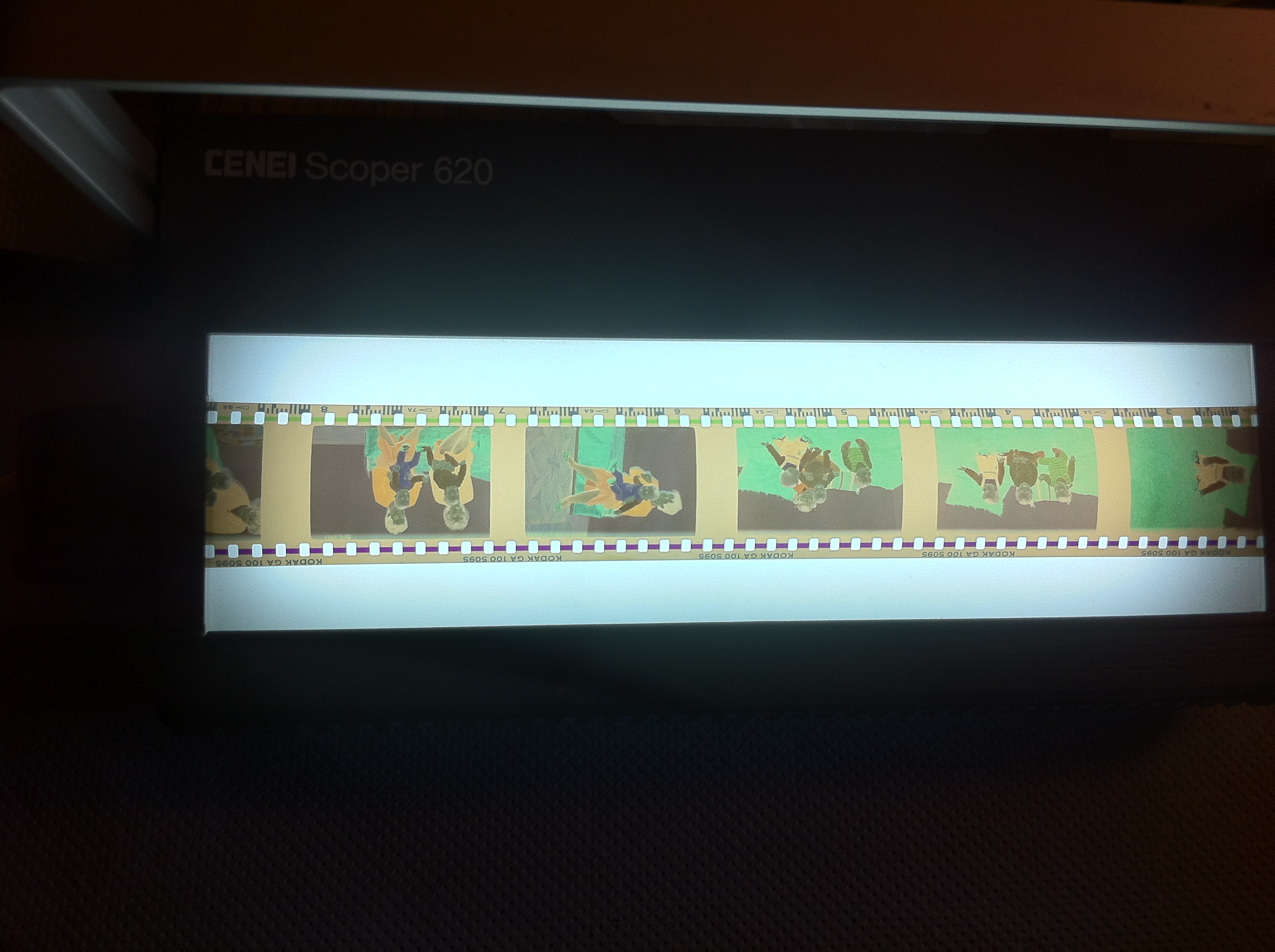 A teraz ciekawostka. Trafiają się bardzo dziwne filmy. Skanuję kolejne archiwum. I wśród wielu filmów jest kilka takich jak na załączonym obrazku. Żaden program nie potrafi tego przeskanować wsadowo. Mało tego, żaden nie potrafi tego w ogóle przeskanować, bo tego paska nie da się normalnie oprawić w żaden podajnik. A VS i owszem. Podajesz rozmiar klatki i odległość między nimi. Cały film idzie z automatu. Kiedyś miałem kilka filmów o rozmiarze klatki 24x32 mm. Do dzisiaj nie wiem co to za aparat takie robił, ale miałem. Tu podobnie jak z przykładowym. Nie do zrobienia automatycznie, przy pomocy żadnego ze znanych mi programów, a VS tak.