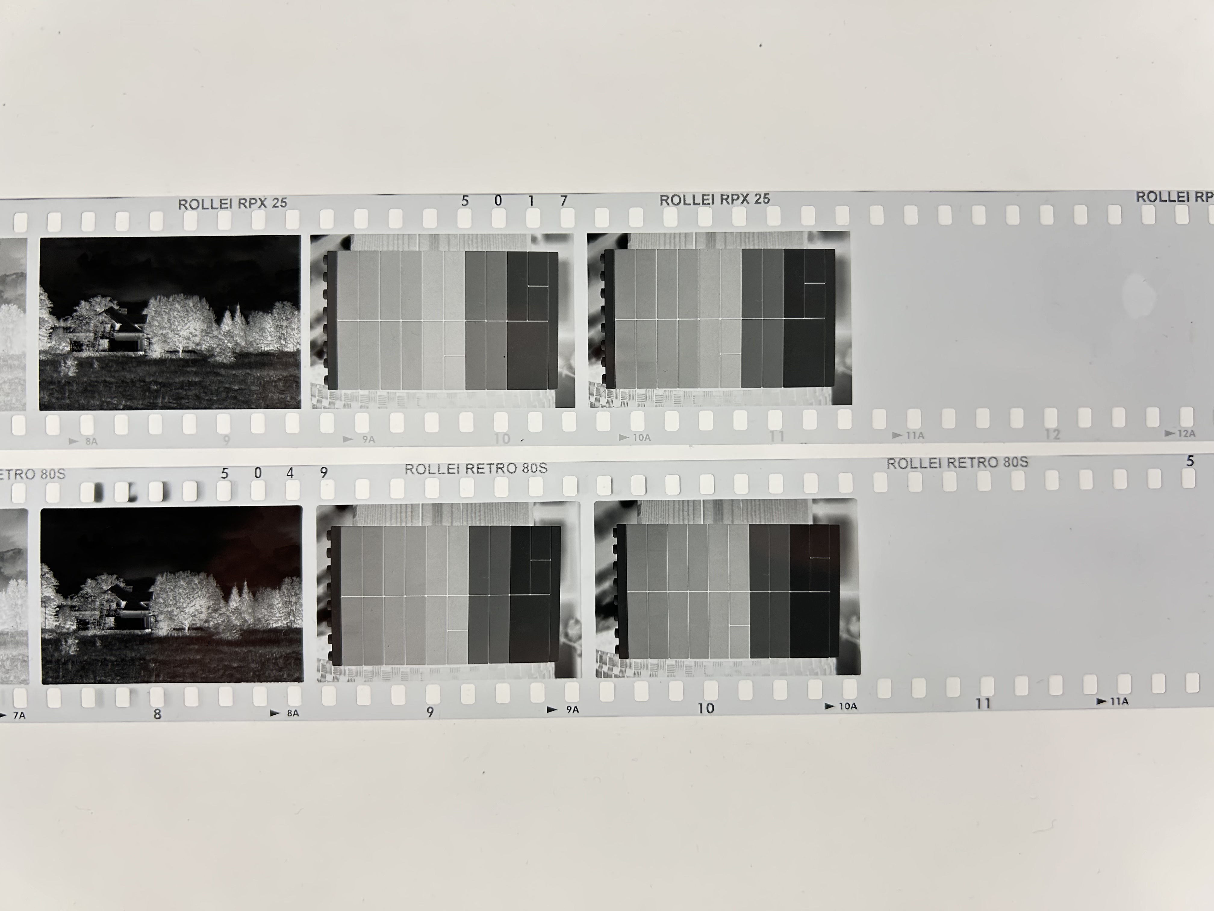 RPX25 użyłem kilka razy, wiem na tej podstawie że ma bardzo małe ziarno, stosunkowo niski kontrast, podwyższone uczulenie na kolor czerwony i podłoże bardziej ilfordowskie - kto robił stykówki ze średniego formatu R.Retro 400 ten wie o czym piszę.