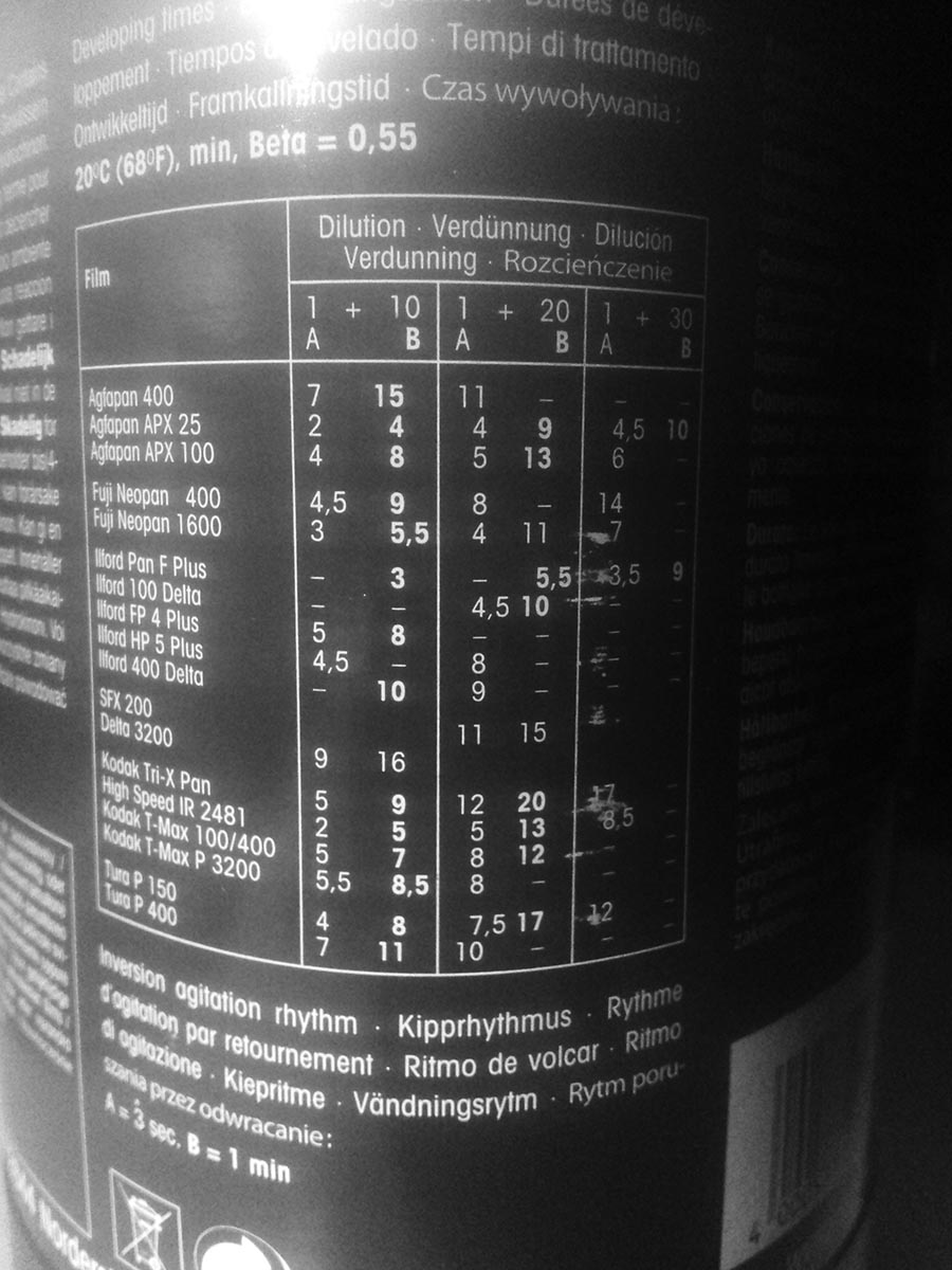 przy obracaniu w rytmie raz na trzy sekundy, wywołujesz 4,5 minuty. Ale przy tak krótkich czasach wolania łatwo o błędy. Na początek poleciłbym wołanie z obracaniem wg ilforda. 10 minut, co minute 4 obroty.