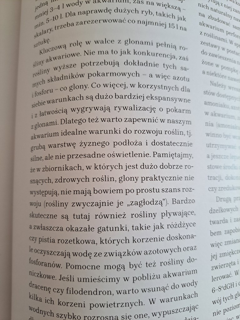 To fragment z "rośliny w akwarium" Diana Walstad. Mam tą książkę, to tylko jedna ze stron tej skomplikowanej układanki. Diana pisze o roślinach posadzonych w żyznym podłożu lub wręcz w doniczkach. Zwracam uwagę, że chodzi o żyzne podłoże, nie piasek tylko glebę, w zasadzie podobną jak ta, do której sadzimy ziemniaki. Rośliny mając dostęp poprzez system korzeniowy do bogatych zasobów mineralnych w podłożu. Pisze wyraźnie o korzystnych warunkach dla roślin i tylko w korzystnych warunkach mogą wygrać w konkurencji. W samej wodzie bez podłoża i korzeni, przegrają. Pistia też jest przez Dianę w dalszych akapitach wymieniana i jest prawdą co na jej temat piszesz, ale to znowu system korzeniowy i bonus w postaci dostępu do większej ilości energii i blokowanie jej dostępu do glonów. Ale glony to nie tylko zielenice, w zbiorniku zarośniętym całkowicie roślinami pływający doskonale rozwijają się okrzemki, to też glony.