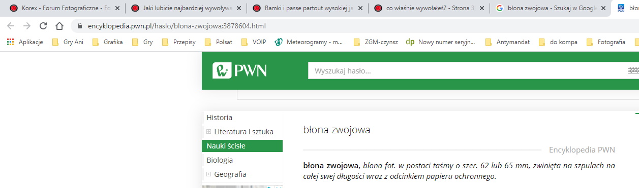 Przecież obie definicje składają się na rzeczywistość, w której błona zwojowa to rodzaj filmu fotograficznego.