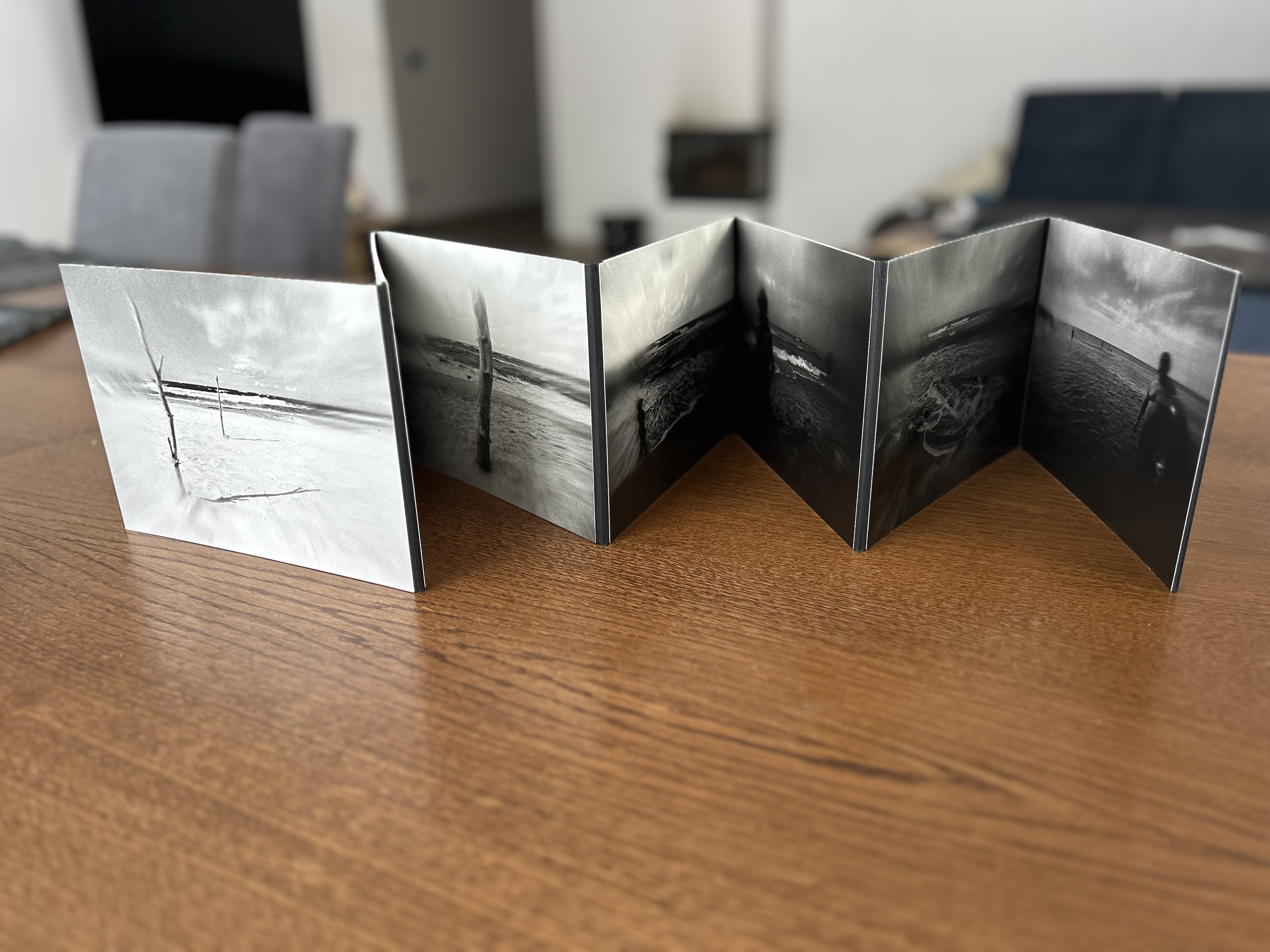 Do małych nakładów polecam Wam formę książki harmonijkowej. Czysty baryt na tekturze. Po rozłożeniu fajnie prezentuje się na wystawie.