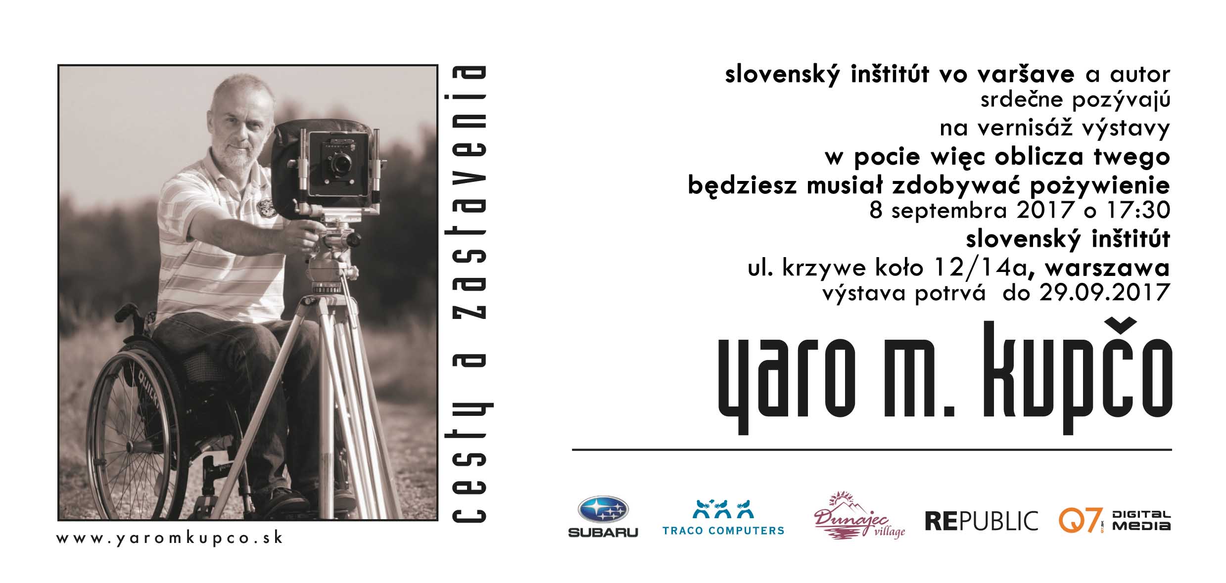 W Instytucie Słowackim w Warszawie (Krzywe Koło 12/14a), 8 września o 17.30 rozpocznie się wernisaż wystawy słowackiego fotografa z Piesztan Jara Kupčo. Więcej o jego twórczości tu: http://www.yaromkupco.sk/