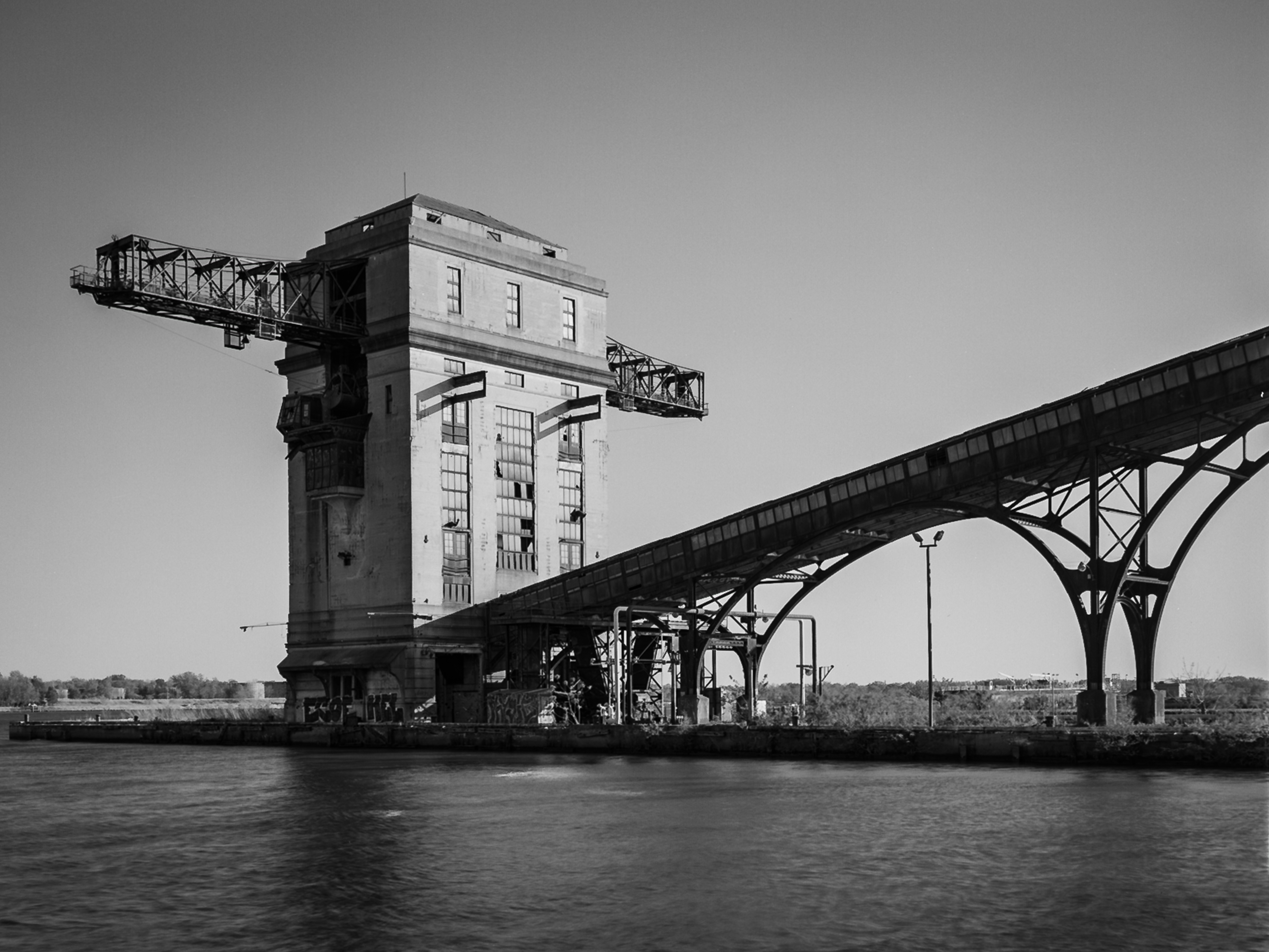 A budowla to nad brzegiem rzeki suwnica z tasmociagiem do rozladunkunwegla i przesylu do budynku elektrowni.