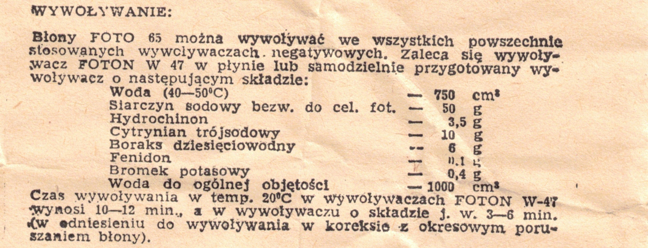 Bo masz wersję konfekcjonowaną przez Foton. Film jest produkcji radzieckiej, a wytwórca zaleca wywoływacz Czibisowa nr 2. Na oryginalnych opakowaniach podawany był czas obróbki danej partii produkcyjnej w tym wywoływaczu.