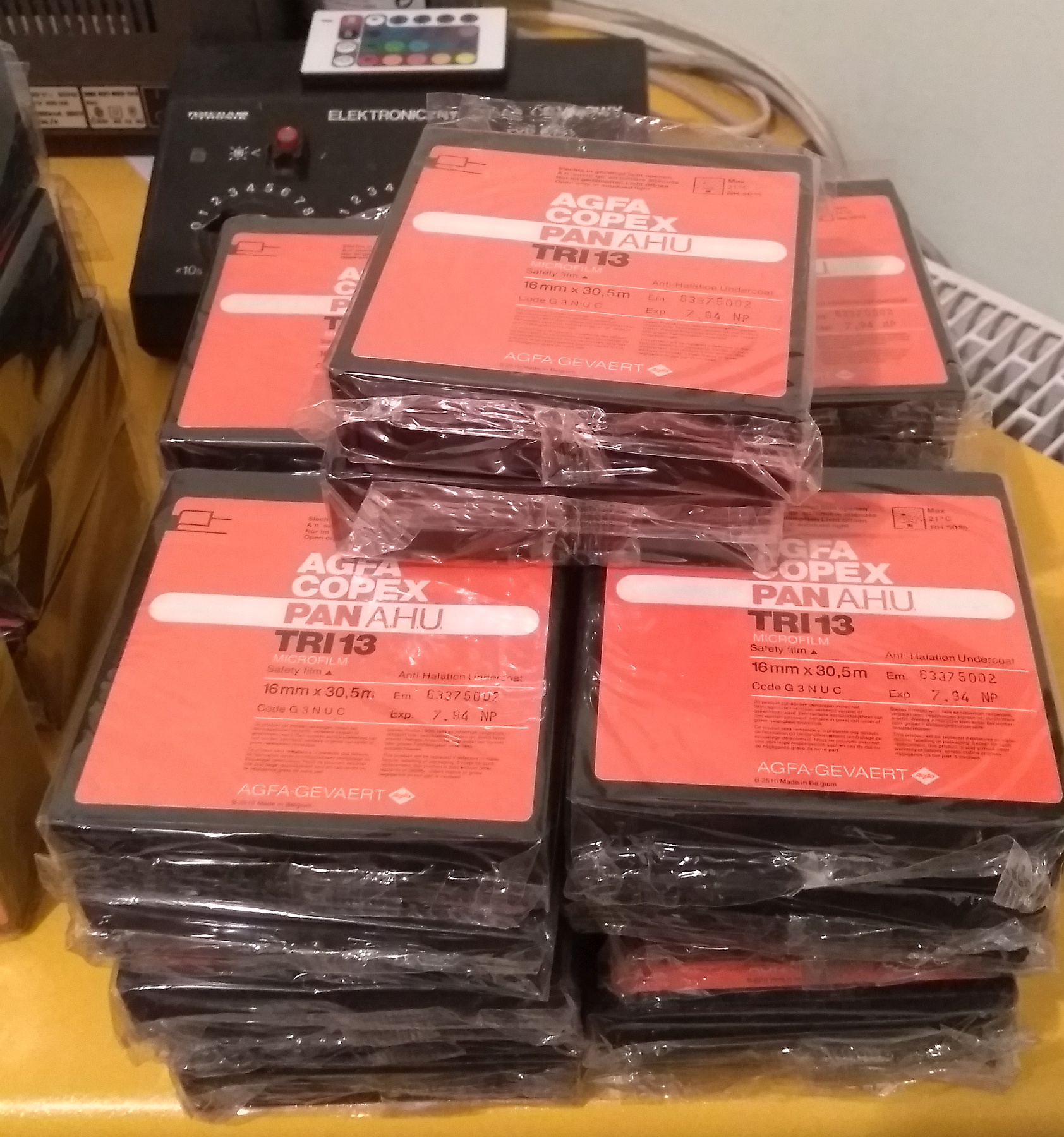 Znazlałem karton szpul takich filmów Agfy. 28 zafoliowanych szpul 30m/16mm i pięć 30m/35mm plus jedna bez folii. Pomyślałem - fajnie, wrzucę w nawijarkę, przestrzelę i zobaczę jak to ugryzł czas - termin przydatności minął w 1994 r.