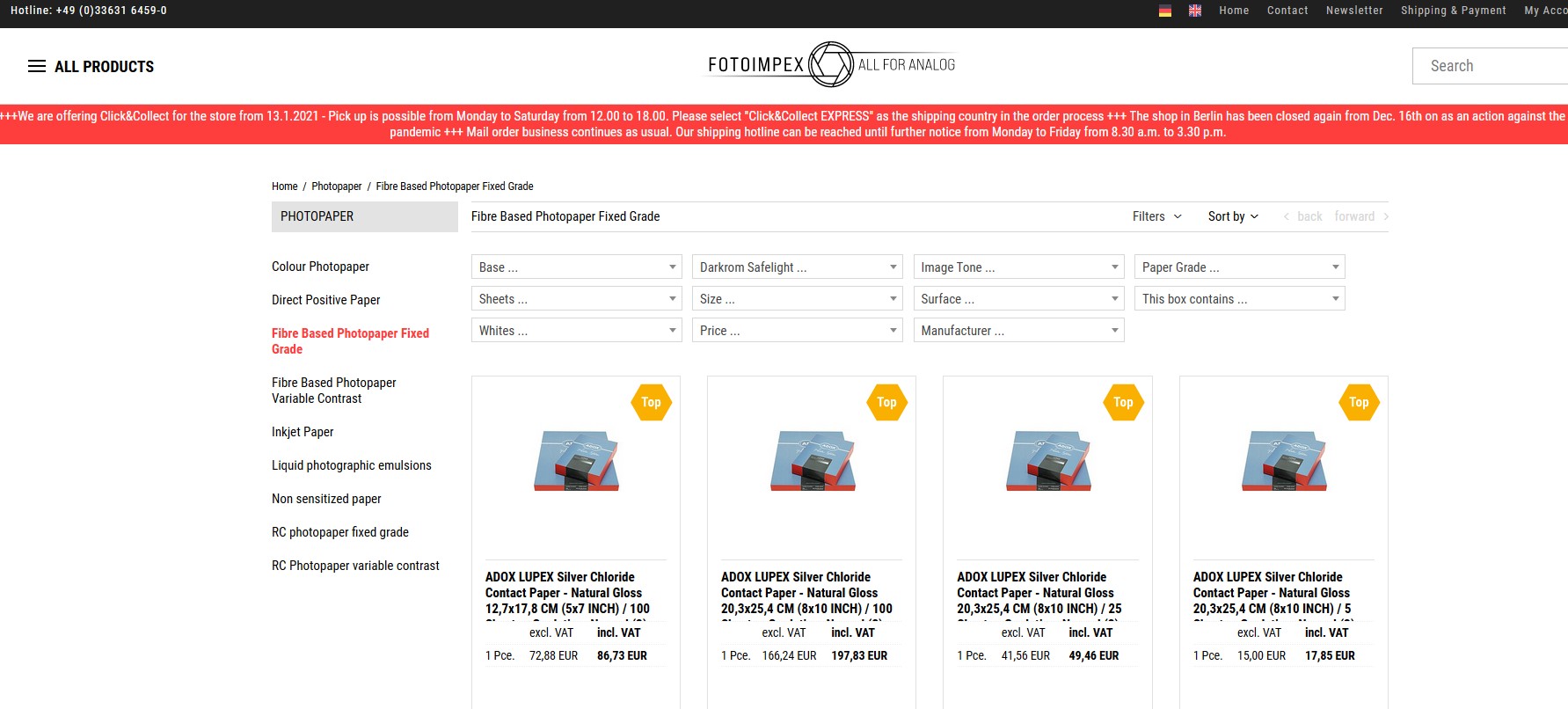 Słuchajcie, może ja mam naiwną wizję rzeczywistości, ale czy istnieje jakiś porządnie zrobiony sklep, który nie ma przy każdej pozycji napisane "bardzo mało, prawie nic już nie ma", już nie mówiąc o ładowaniu człowiekowi pod oczy rzeczy, które są w ogóle niedostępne? I jeszcze, jakby na przykład można było wyszukiwać po czułości filmu, formacie papieru, liczbie klatek... Bo i czarno-białe, i fotonegatyw, chyba też fotociemnia wyglądają jak bieda z nędzą pisane przez studenta. To tak teraz wszędzie, czy może gdzieś jest cywilizacja?
