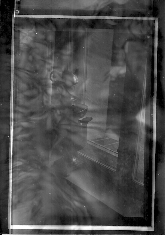A ja to właśnie wywołałem na szybko, żeby tylko sprawdzić, czy usprawniana migawka Bloc Metal 41 działa i czy przy skręcaniu obiektywu trafiłem z ustawianiem ostrości, 6x9 stykowo pod jakimś przypadkowym szkiełkiem i na klapie od sedesu, naświetlane zbyt mocną lampą błyskową, bo w tej łazience nie mam wyłącznika wewnątrz. Migawka, zgodnie z podejrzeniami, ma praktycznie taki sam czas na 25, 50 i 100, więc regulacja tylko przysłoną. Na szczęście działa też B, więc można robić z lampą.