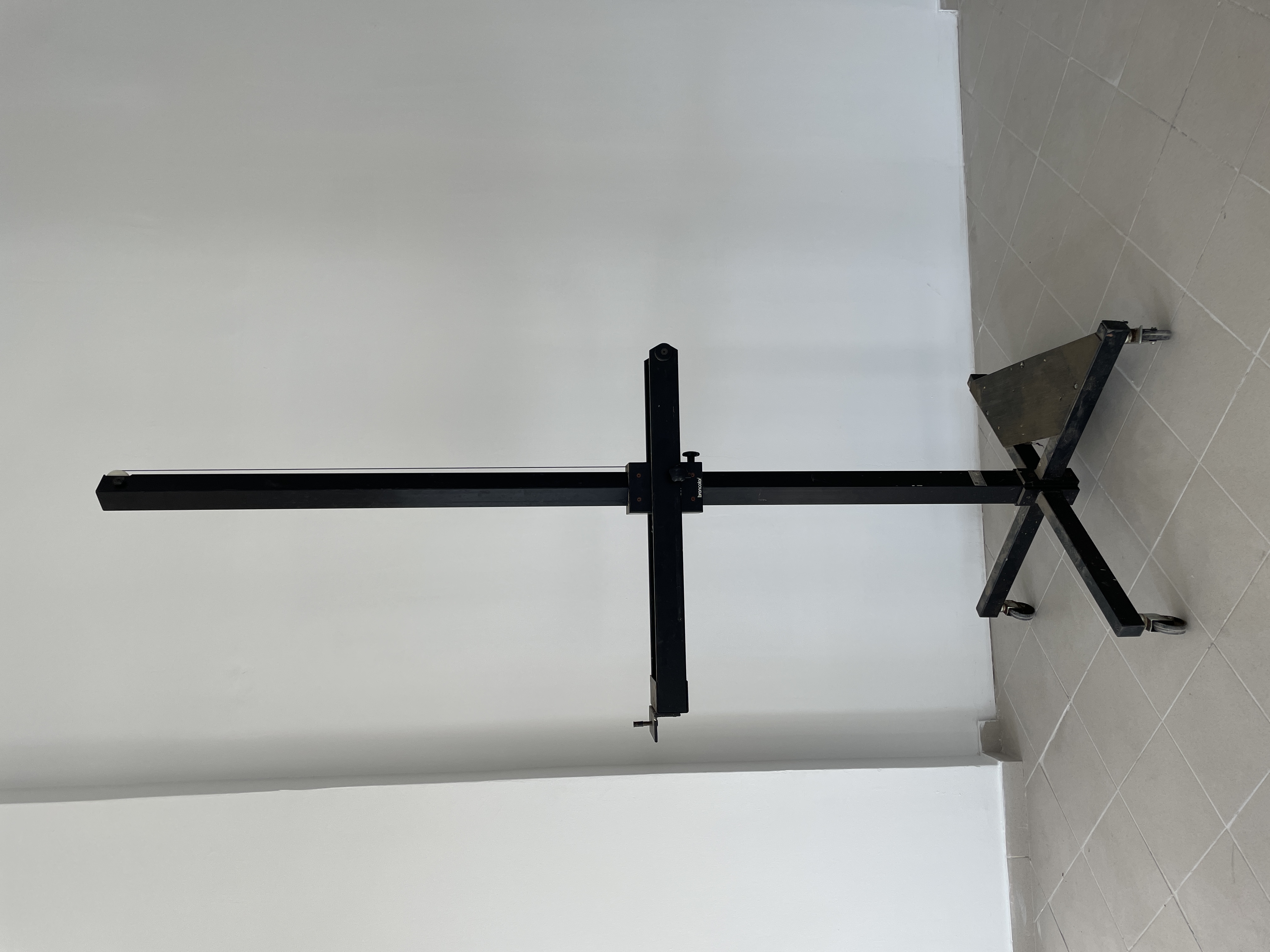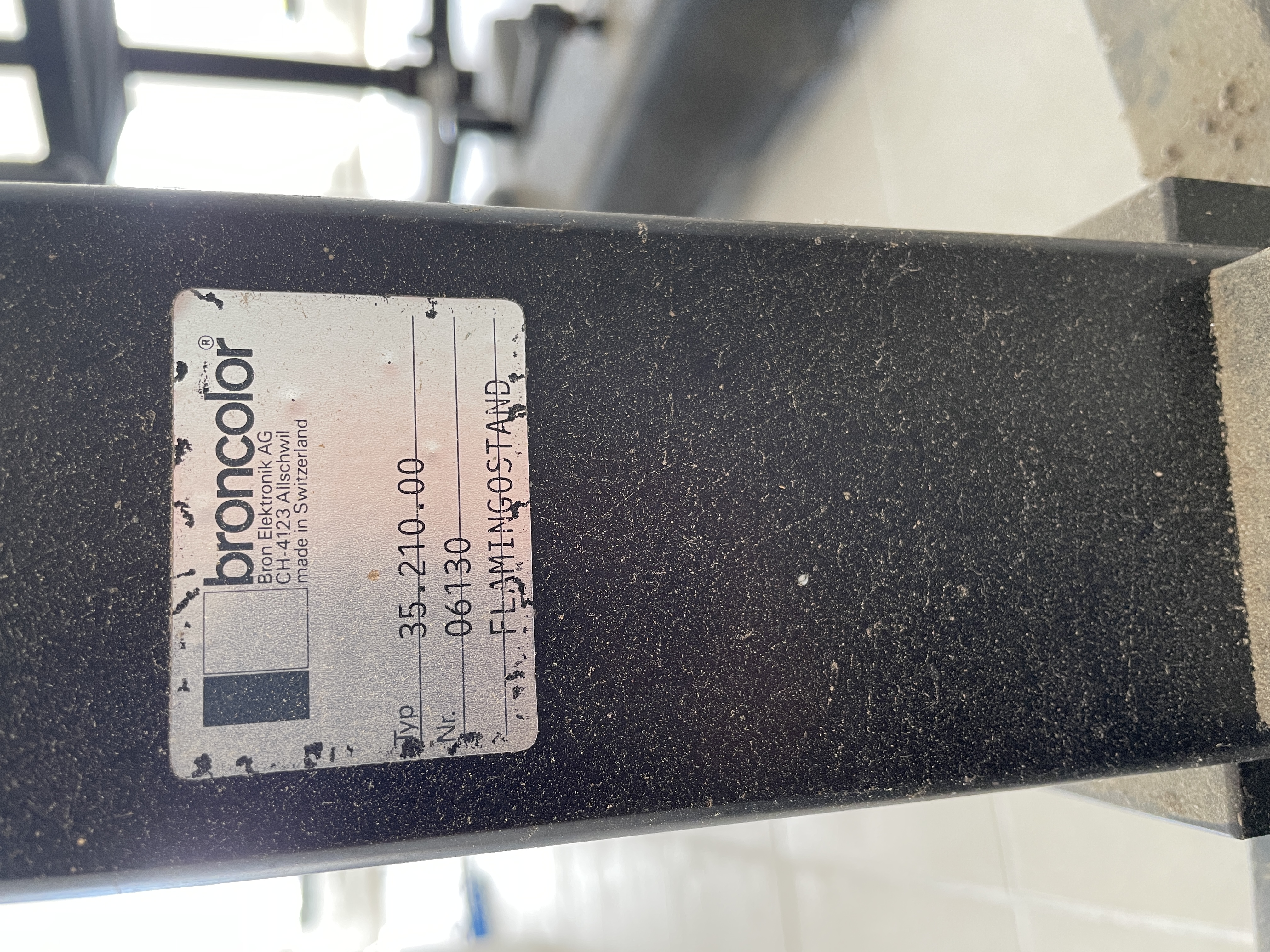 Komplet wielkich statywów Broncolor, jak na zdjęciach. Statyw typu boom ma oba ramiona o długości 200 cm. Oba wymagają przesmarowania, ale są sprawne.