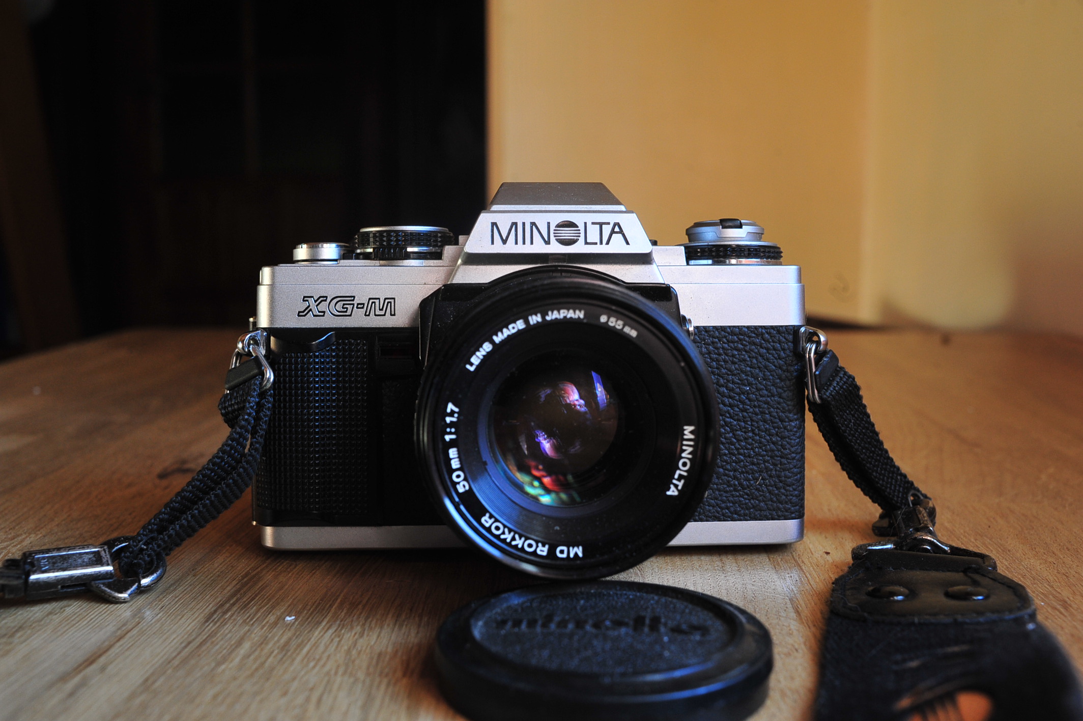 Minolta nosi niewielkie ślady używania, żeby dostrzec to trzeba się przyjrzeć, a najbardziej na dolnej stronie. Płytka dociskowa jak nowa, nawet gąbka w komorze jeszcze się nie sypie i jest na swoim miejscu, ale widać że już leciwa tak jak sam aparat. Parę pyłków na matówce i obiektywie, nie chcę tego dotykać bo mi to nie przeszkadza i zostawiam to dla ewentualnego szczęśliwego nabywcy. Niech sam zdecyduje. Co do matówki to myślę że większość wsółczesnych DSLR i to nawet z segmentu PRO mogła by się zawstydzić przy tej Minolcie. Aparat musi być zasilany dwoma małymi bateryjkami. Posiada preselekcję przysłony, podgląd głębi ostrości, samowyzwalacz. Standartowy, jasny obiektyw ma dość dziwne rozmycie które może się podobać lub nie.