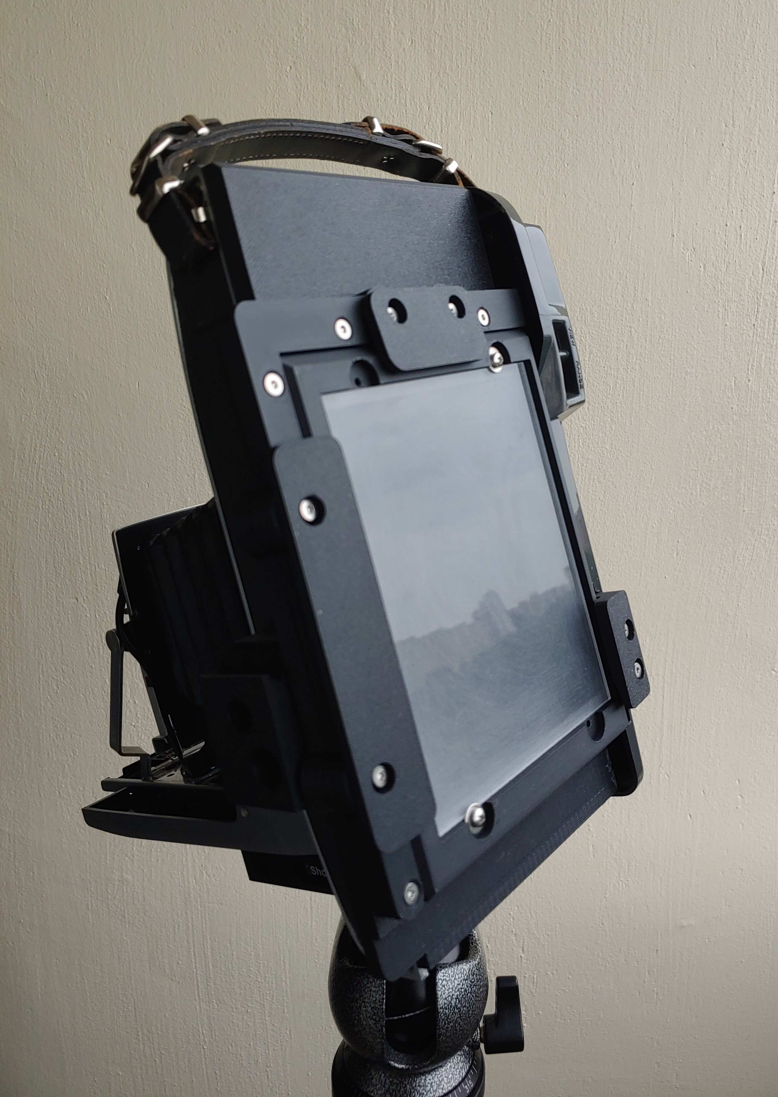W sąsiednim wątku Mirosław rozpoczął dyskusję o LF, która zainspirowała mnie do zrobienia sobie kamery 4x5. Oczywiście nie od początku, nie w stolarni ani w warsztacie ślusarskim. Poddałem konwersji na film 4x5 Polaroida 110A (a nawet dwa) wykorzystując projekt 3D zmyślnego Norwega (Morten Kolve). Zmodyfikowany Polaroid 110A przyjmuje kasety 4x5, ma działający poprawnie dalmierz i korektę paralaksy w wizjerze oraz obiektyw 127/4.7 (Ysarex, Ennit). Obraz jest trochę mniejszy niż z "prawdziwej" kamery 4x5 bo ma 9X12 cm i zaokrąglone rogi. Wygląda jak na załączonych zdjęciach (z komórki). Testowy kadr na gównianej Fomie 200 (co mnie podkusiło? myślałem, że legendarny czarny deszcz to przeszłość - o naiwności...).