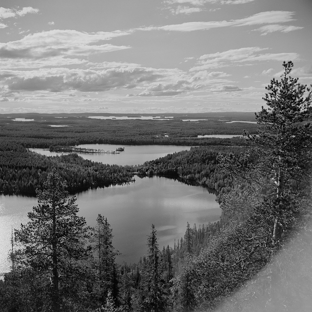 Takie usterki czasem się zdarzają. Poniżej przykład zaświetlenia, którego przyczyną było odbicie przednio-bocznego światła od chromowanej oprawy filtra. Spiesząc się, nie założyłem osłony przeciwsłonecznej, bo fińskie komary przypuściły na mnie zmasowany atak i chciałem jak najszybciej zrobić zdjęcie by schronić twarz i dłonie. W lustrzance miałbym szansę dostrzec ten reflex, ale ja używałem wtedy starego, średnioformatowego mieszkowca.