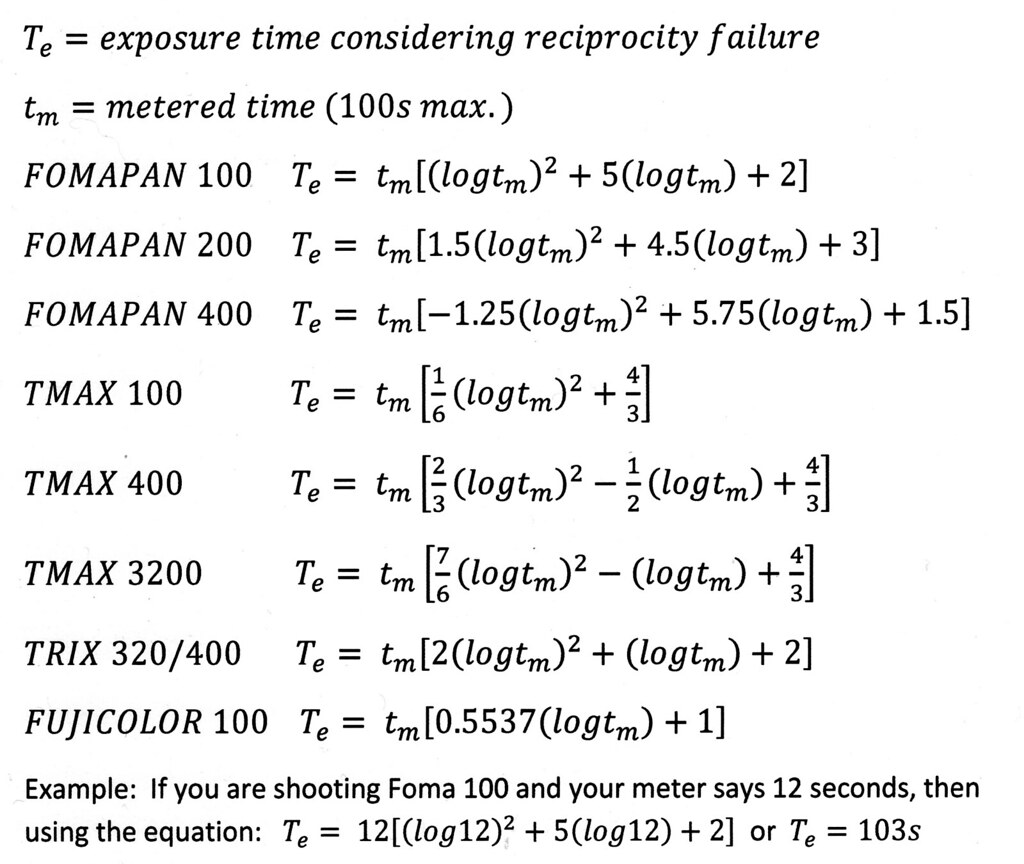 Ilford dla swoich filmów podaje wzór, wg którego łatwo można wyliczyć rzeczywisty czas naświetlania.
