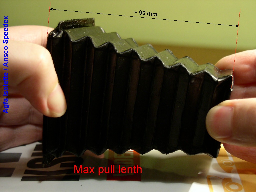 Jak w 2007 roku zamawiałem mieszki w Camera Bellows (obecnie to chyba Custom Bellows) to z ostrożności wysłałem im poniższą dokumentację fotograficzną. Mieszki z cielęcej skóry w warstwie zewnętrznej wykonali perfekcyjnie - za dwie sztuki zapłaciłem 50 funtów + 3,5 funta przesyłka do Polski. Wtedy wydawało mi się. że to dość drogo ale przebolałem tę cenę - Agfy Isolette warte są takiego dofinansowania.