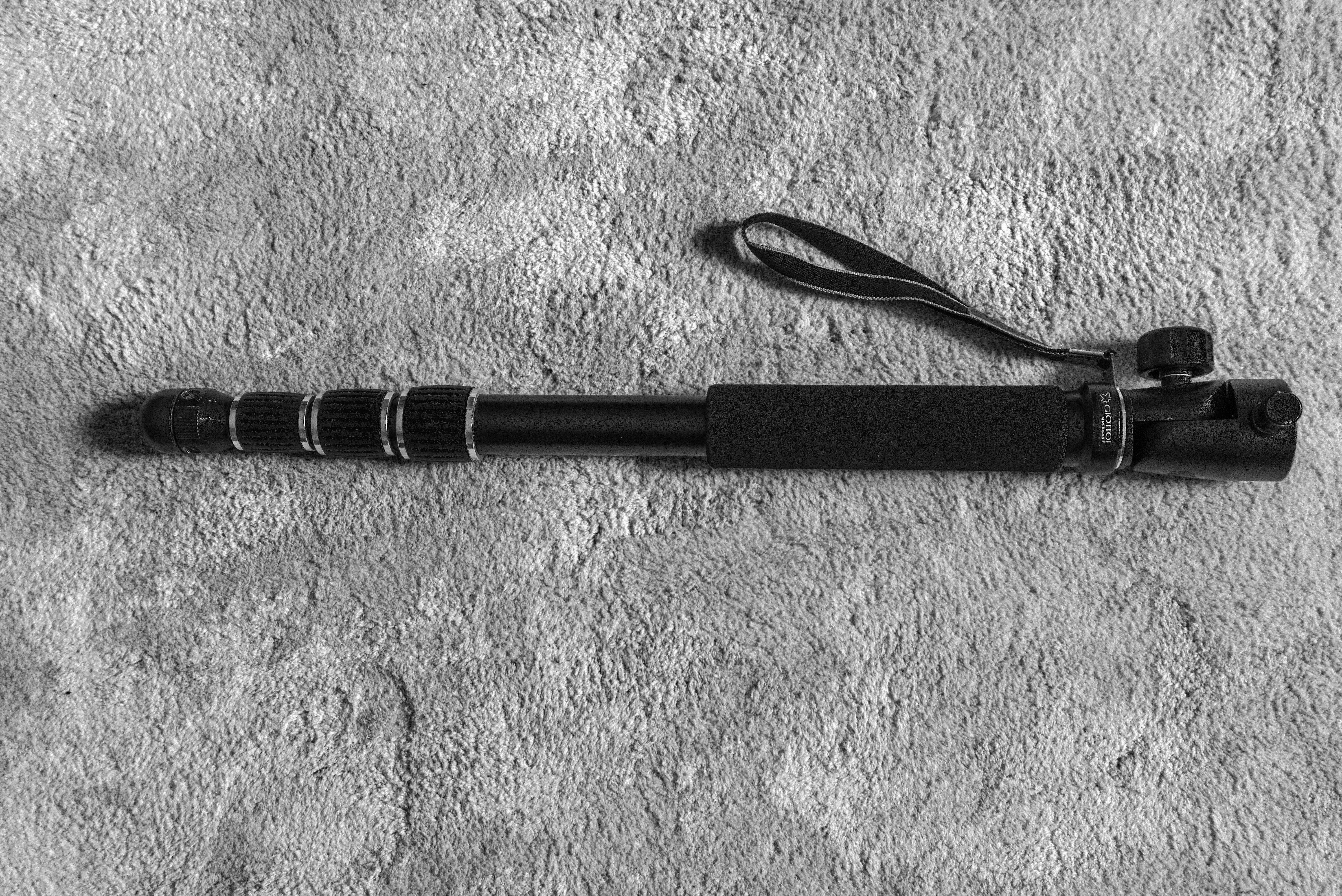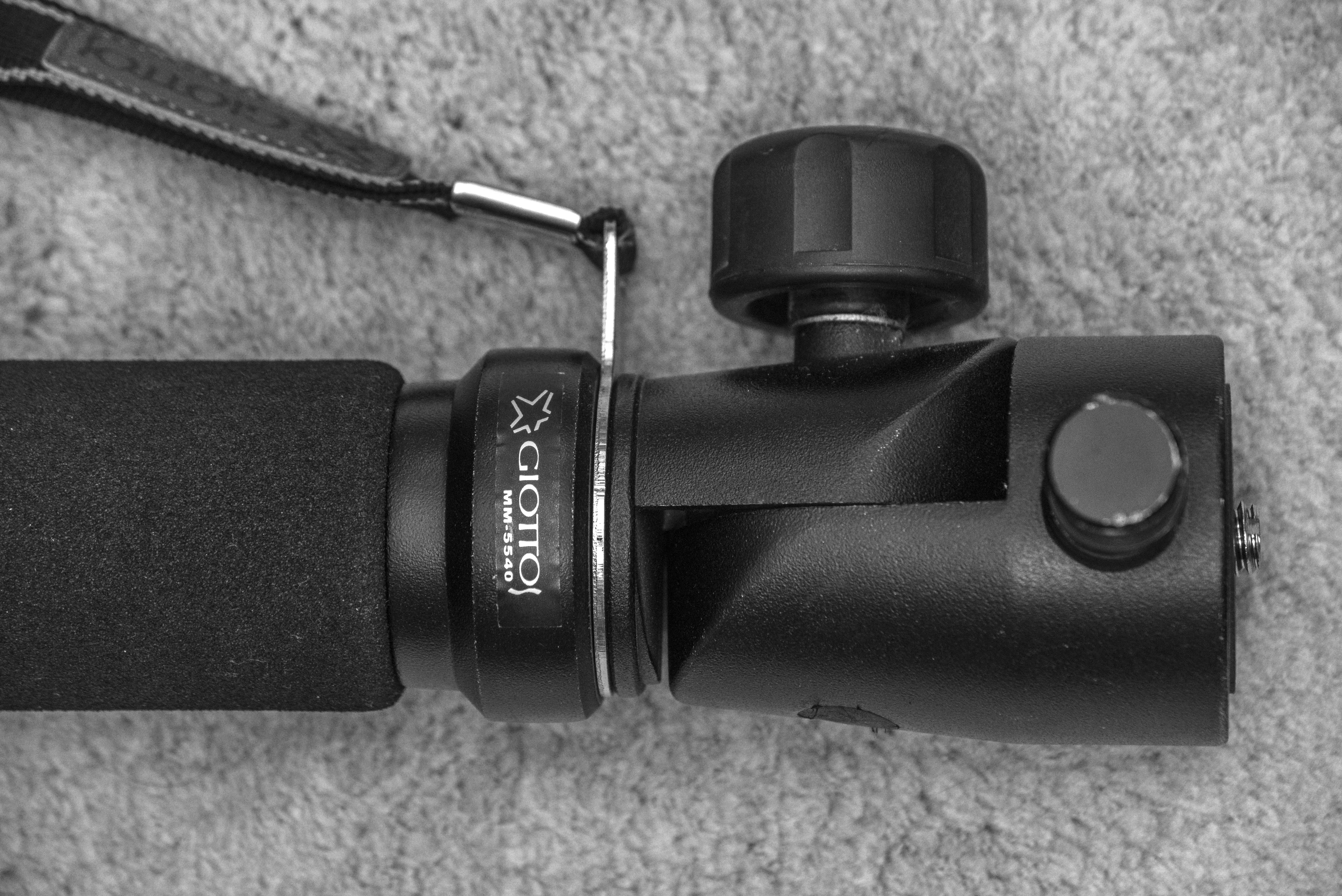 Monopod Firmy Giotto 5540. Długość max. ok.157 cm, złożony ok. 58 cm, waga 1,2 kg. Trzy sekcje. W monopodzie schowane trzy podpórki ułatwiające stabilizacje. Ruchoma głowica. W doskonałym stanie. Może użyty z trzy, cztery razy. Przeleżał w szafie. Cena: 290 zł