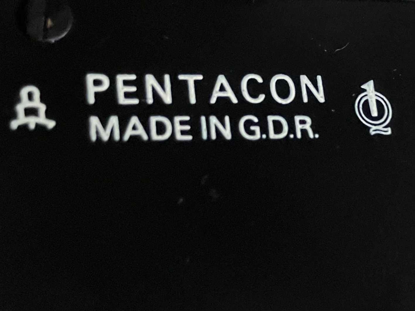Kto mi powie, co to za znak na spodzie niektórych aparatów Praktica? Jeden to sygnet Pentacona, a drugi?
