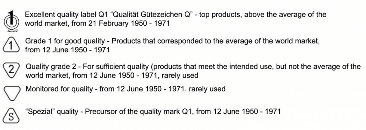 To nie jest znak jakości, a "stempel" kontroli jakości. Znaczy tyle, że wyrób przeszedł pozytywnie kontrolę jakości na koniec procesu produkcji. Chwyt nieco podobny, ale nie sądzę żeby był regulowany na poziomie państwa. Te enerdowskie znaczki jakości to regulacja państwowa.