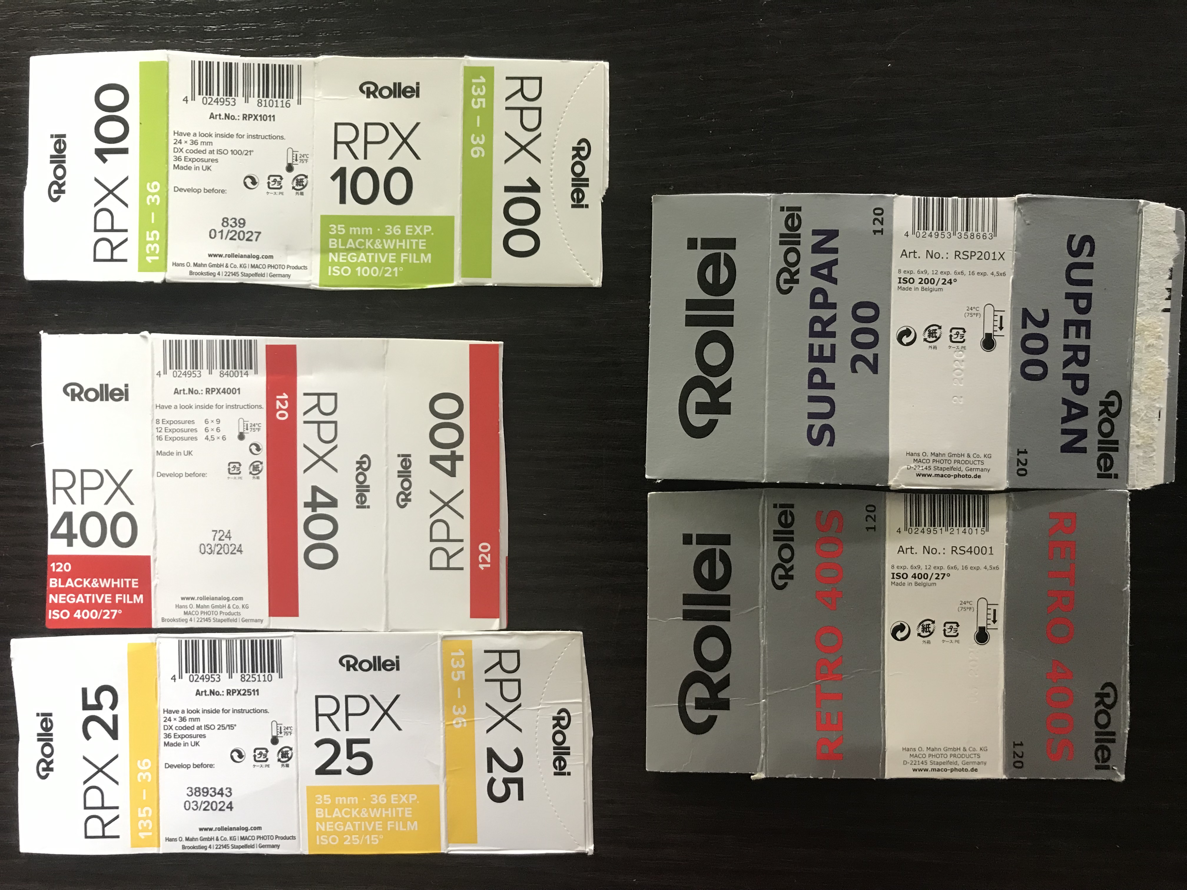 Z człowiekiem się w pełni zgadzam przy czterysetkach - kupuję co jest dostępne i tańsze. Natomiast co do RPX25 i Retro 80s przetestuję z ciekawości, niemniej nie robiłem na tym nic poważnego. Zawsze samodzielne sprawdzenie znaczy więcej niż posłuchanie faceta z jutuba. Być może „made in” dotyczy pudełka.