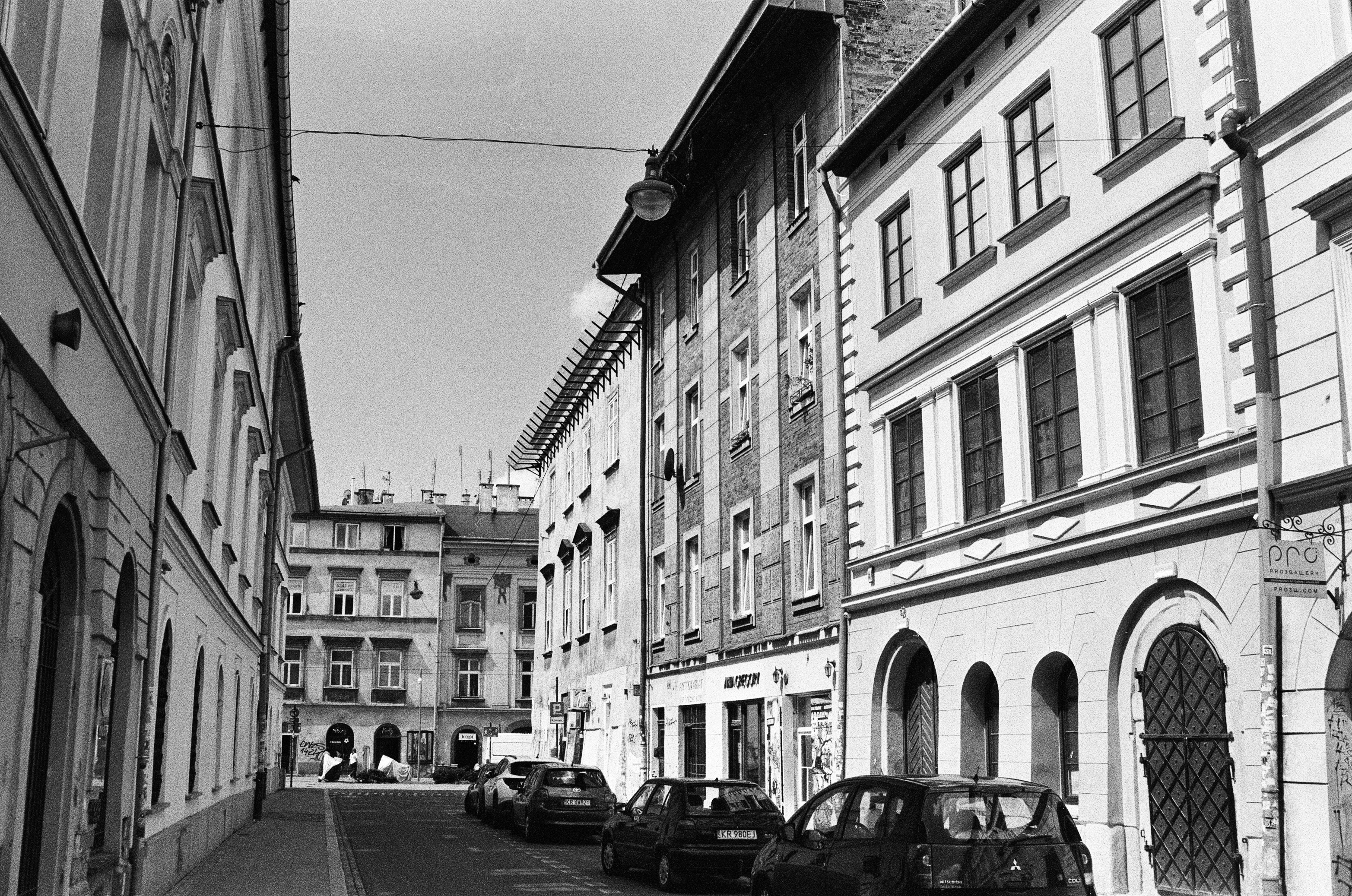 Trochę fotek z tego aparatu i Rokkora 35-70/3,5. Szkło opracowane wraz z niemiecką Leicą, sprzedawanę u nich jako Leica 35-70/3,5.. Zdjęcia to krakowski Kazimierz w południe. Błona Kodak Double-X ważna do 2018 roku, świecona na 200 ASA w sierpniu tego roku. Wywoływacz D76. Trochę obawiałem się jak wyjdzie. Film co prawda cały czas leżał w lodówce. Nie mrożony. Wyszło dobrze. Skany nie obrabiane.