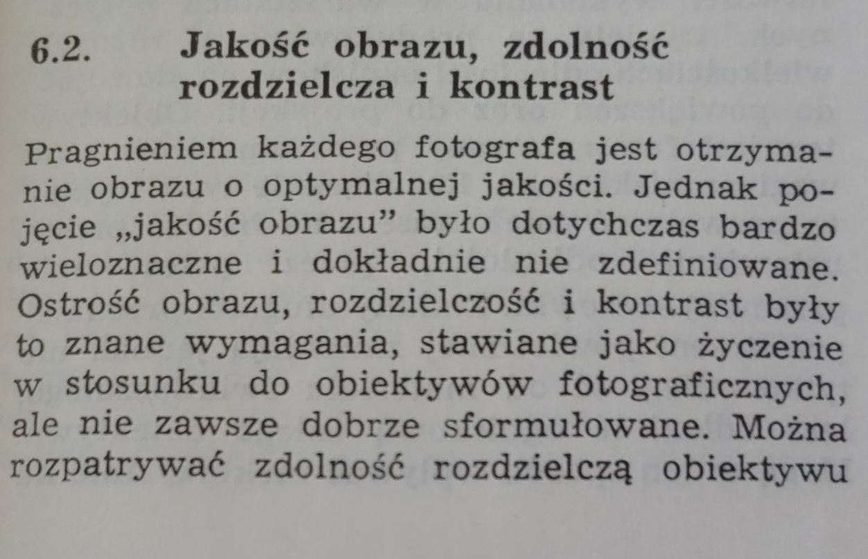 Tylko weź odpowiednią poprawkę na to, że oceny obiektywów wynikające ze współczesnych testów ilustrują ich parametry we współpracy z aparatami cyfrowymi, wyposażonymi w wysokorozdzielcze matryce. Dlatego obiektywy które w takim połączeniu oceniane są jako średnie, będą klasyfikowane jako wyśmienite gdy będzie oceniane to, co one rejestrują na filmie światłoczułym.