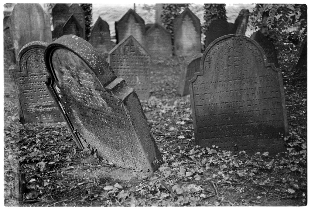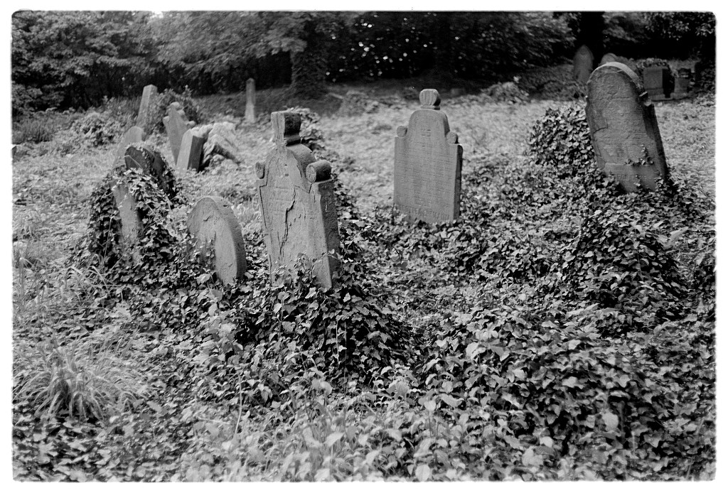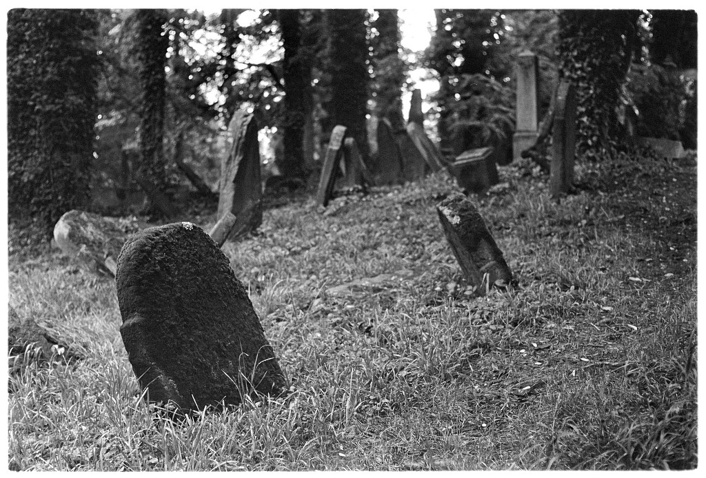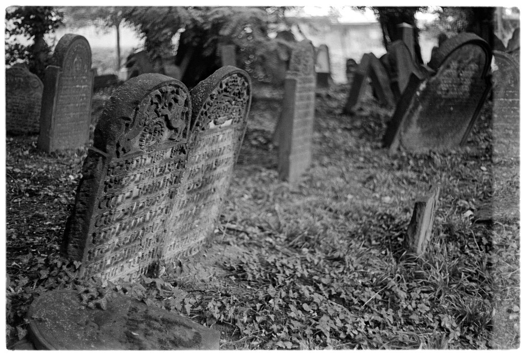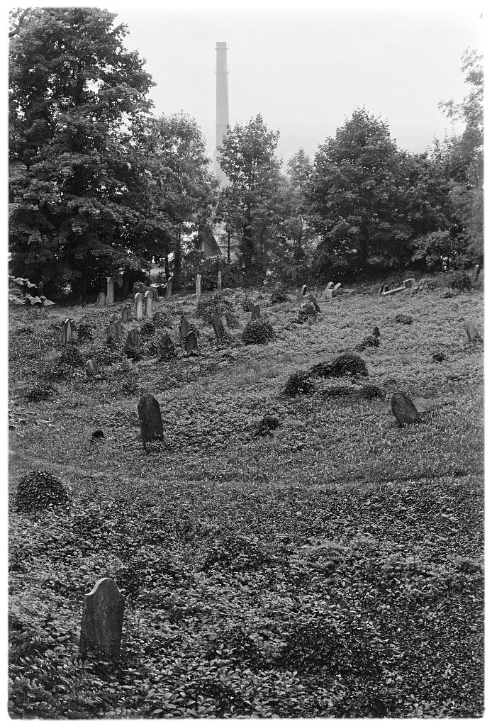 Stary kirkut w Cieszynie (przy ciężkim, całkowicie zachmurzonym niebie):