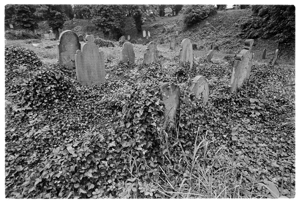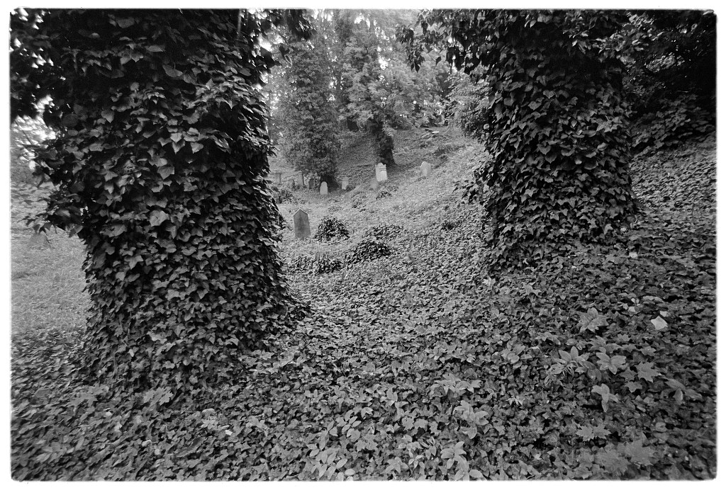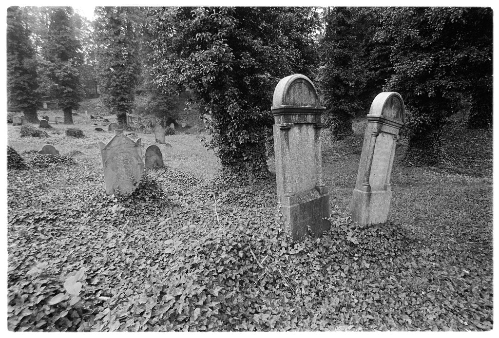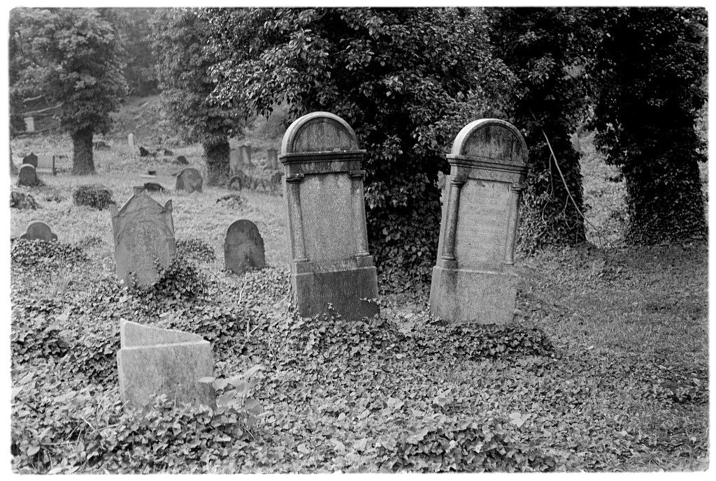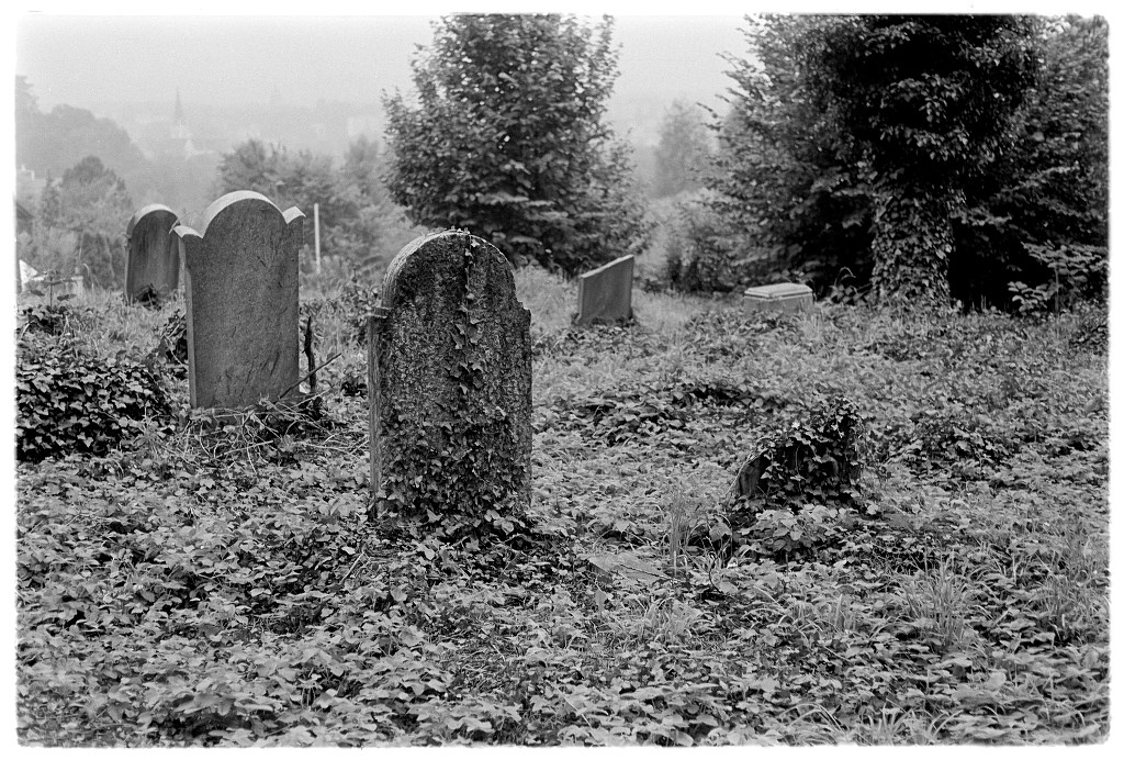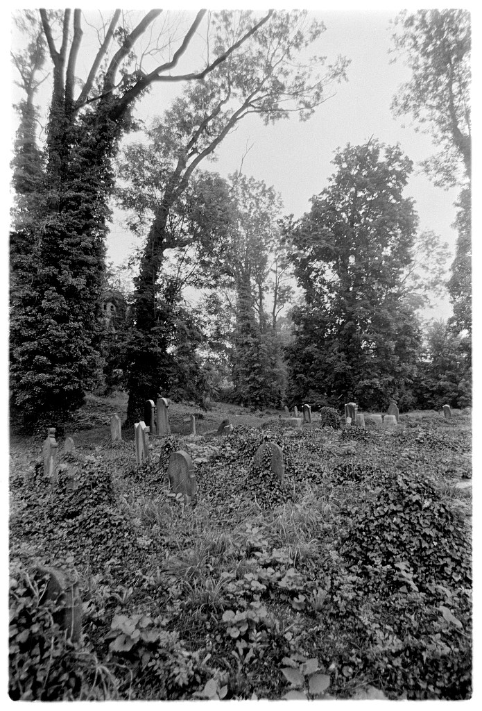 Stary kirkut w Cieszynie (przy ciężkim, całkowicie zachmurzonym niebie):