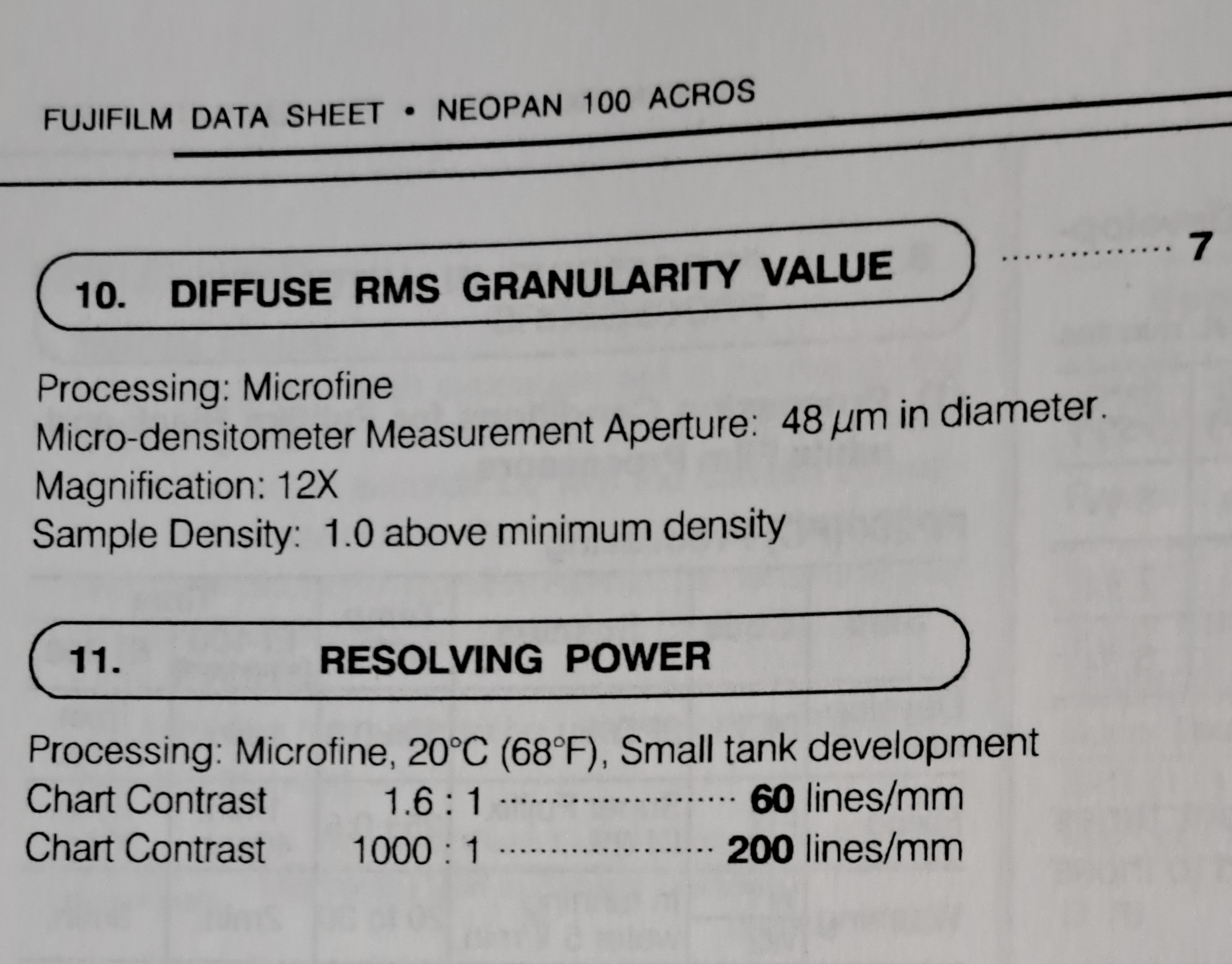 Zwróć uwagę, że zdolność rozdzielcza zależy od kontrastu - choć nie wiem czy chodzi o kontrast sceny (tablicy testowej), czy kontrast samego negatywu, który może być mniejszy lub większy - w zależności od sposobu wywołania.