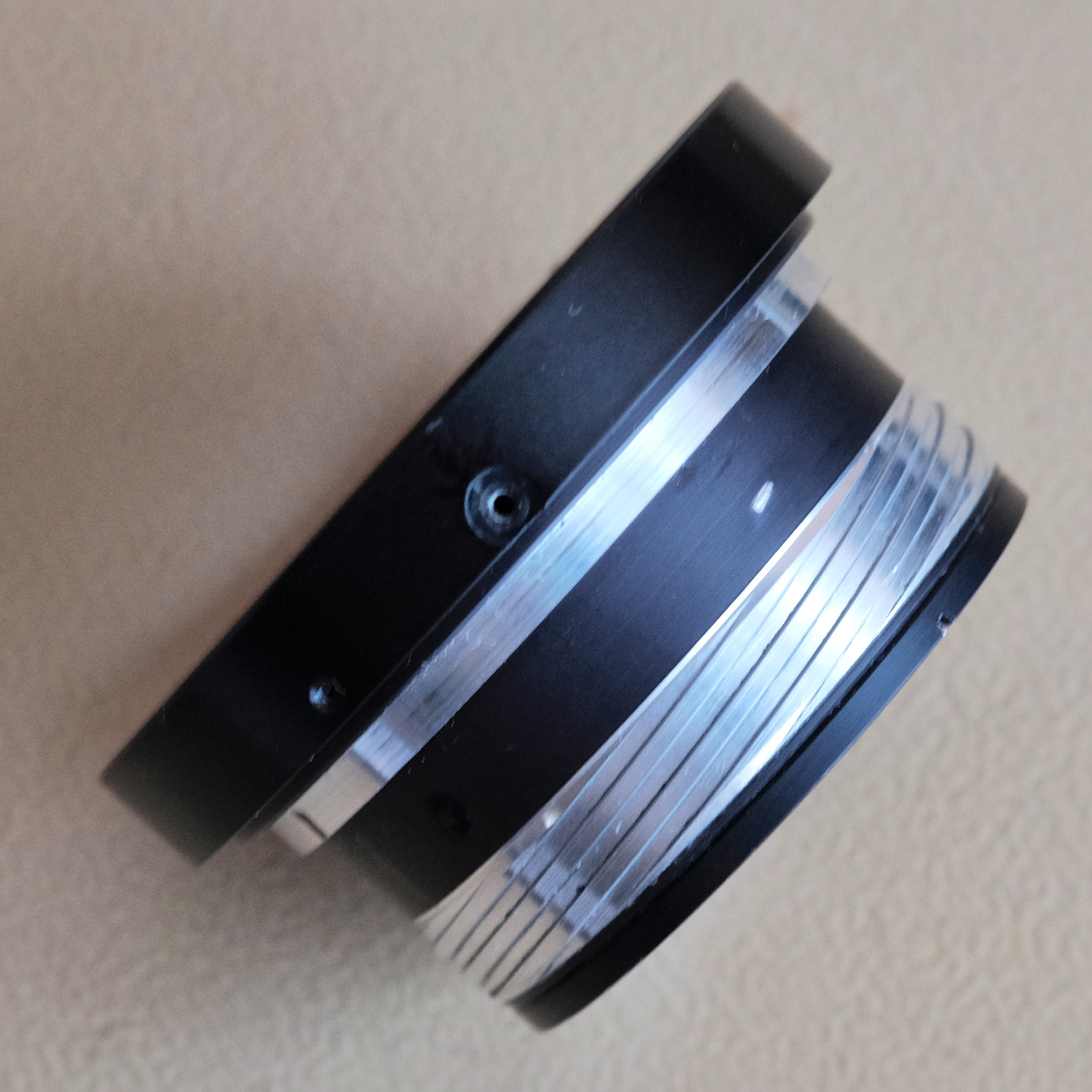 Czerwona soczewka to ta, którą uparcie szlifuję, jej nie ma na zdjęciach, normalnie jest zamontowana za tą niebieską. Widać to na zdjęciu, powinna być wkręcona u góry: