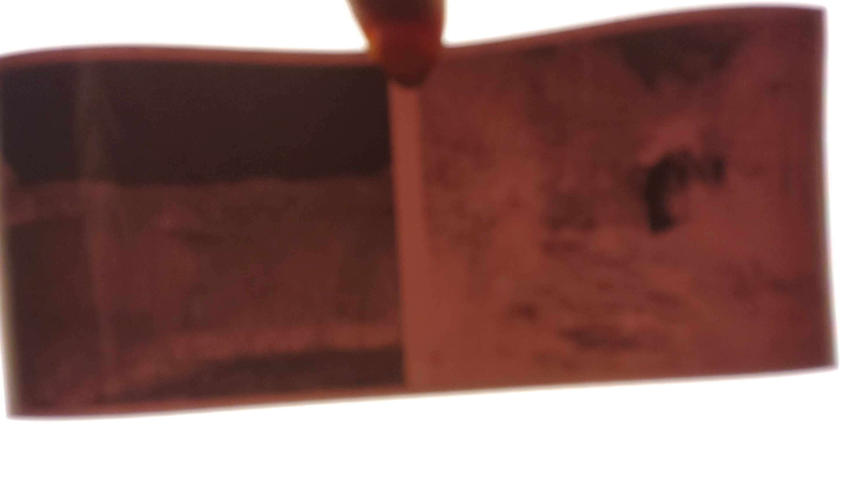 Byle jakie zdjęcie negatywu na tle białego ekranu monitora. Nie dam rady uzyskać ostrego obrazu, ale kolor widać. To raczej nie jest maska jak na filmie wywołanym w procesie C-41, chyba. Swoją drogą nie mogę zrobić zdjęcia negatywu na przeglądarce bo na ekranie telefonu mam wędrujące paski zamiast jasnego tła.