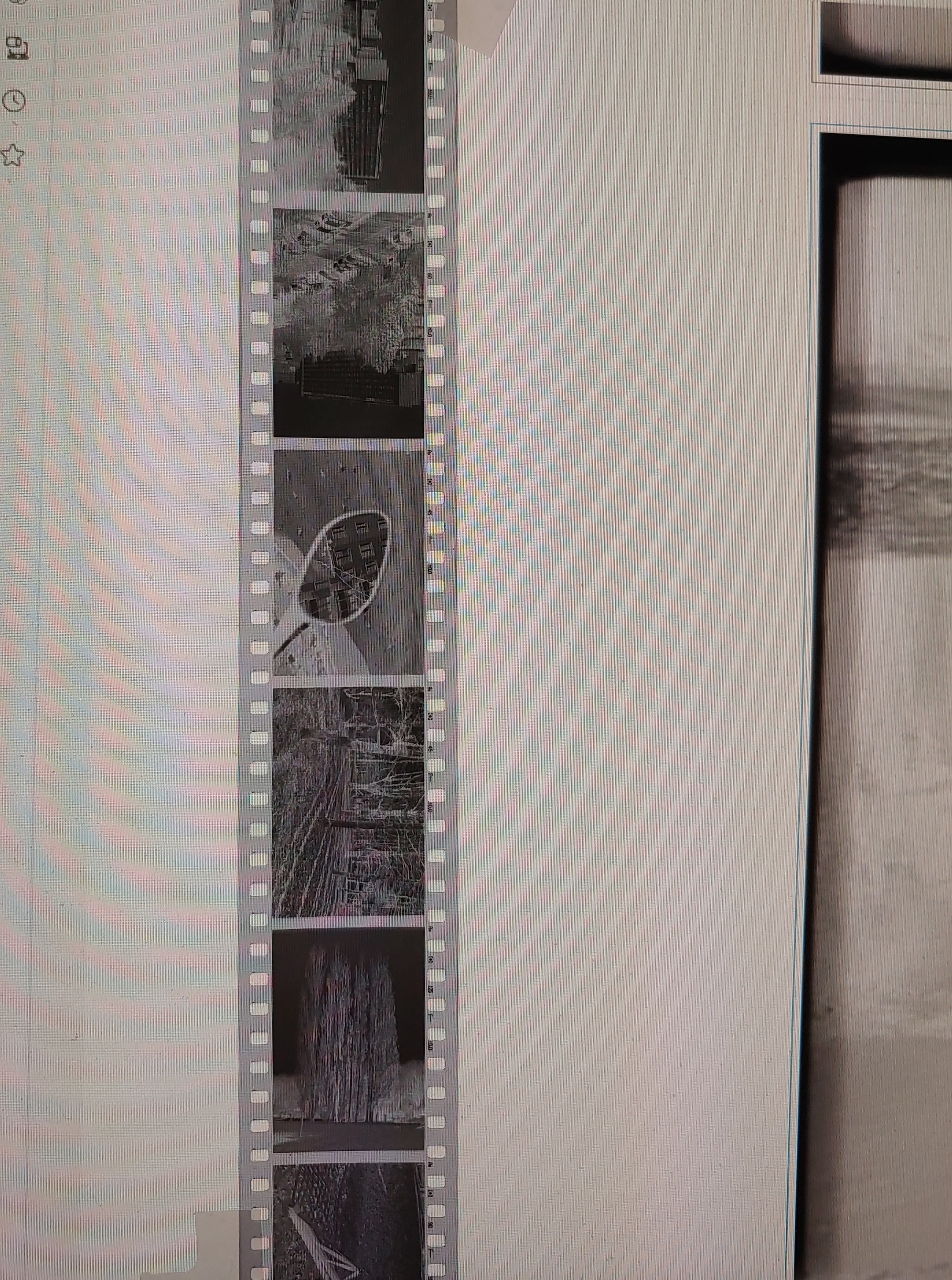Niepotrzebnie drukowałeś ten uchwyt - wystarczyło położyć negatyw na jakimś podświetlonym panelu, a nawet sfotografować kilka klatek na raz trzymając go w dłoni na tle zachmurzonego nieba. Przy okazji obciąłeś widok marginesów, a po ich wyglądzie wraz z napisami też można wnioskować o prawidłowości procesu wywoływania.