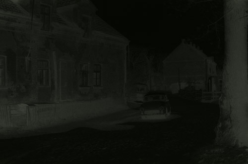 Światło żarówki powiększalnika nie mogło się należycie przebić przez ciemny film. Przy znacząco dłuższym naświetlaniu, było widać szczegóły, ale jakość odbitki była słaba.