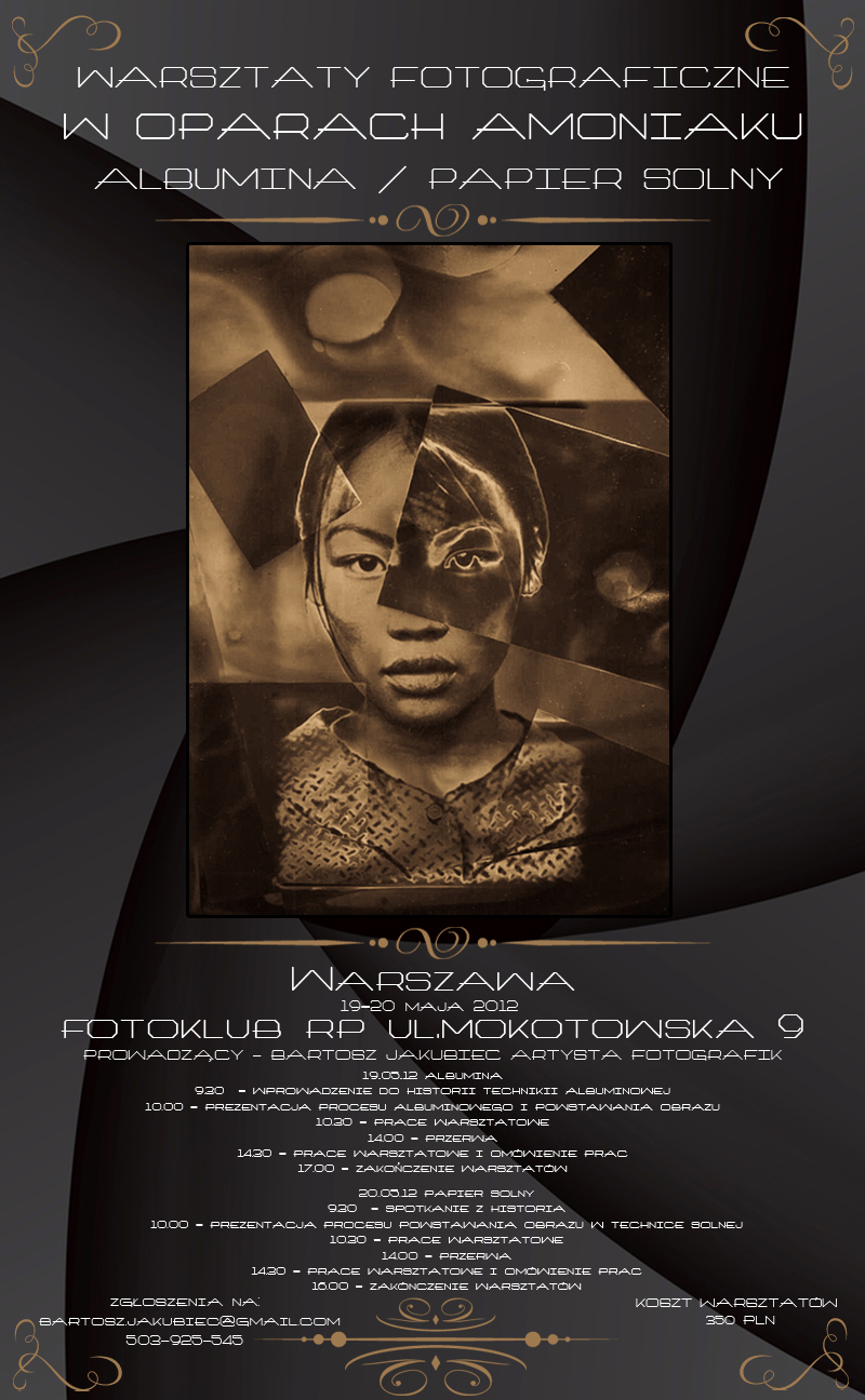 Zapraszam wszystkich serdecznie na warsztaty fotograficzne poświęcone Technice Albuminowej oraz Solnej. Koszt warsztatów obejmuje 2 dni wykładów i zajęć praktycznych. Papier Solny oraz Albumina to jedne z pierwszych technik fotograficznych i najbardziej popularnych w XIX wieku.
