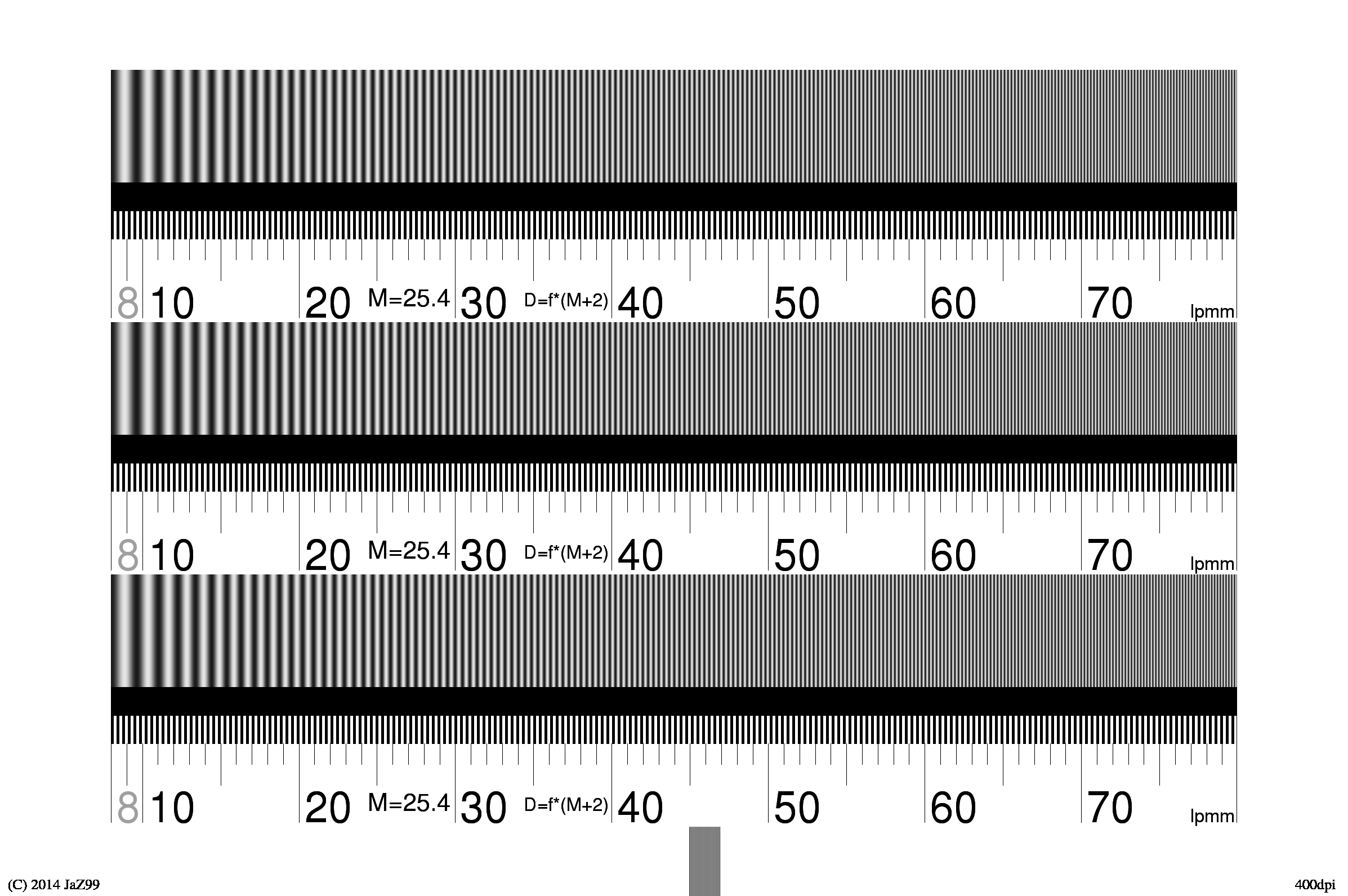Moja wersja używa liniowej skali lpmm, wersja oryginalna logarytmicznej. No i nie musisz drukować płachty A4, tylko pocztówkę.