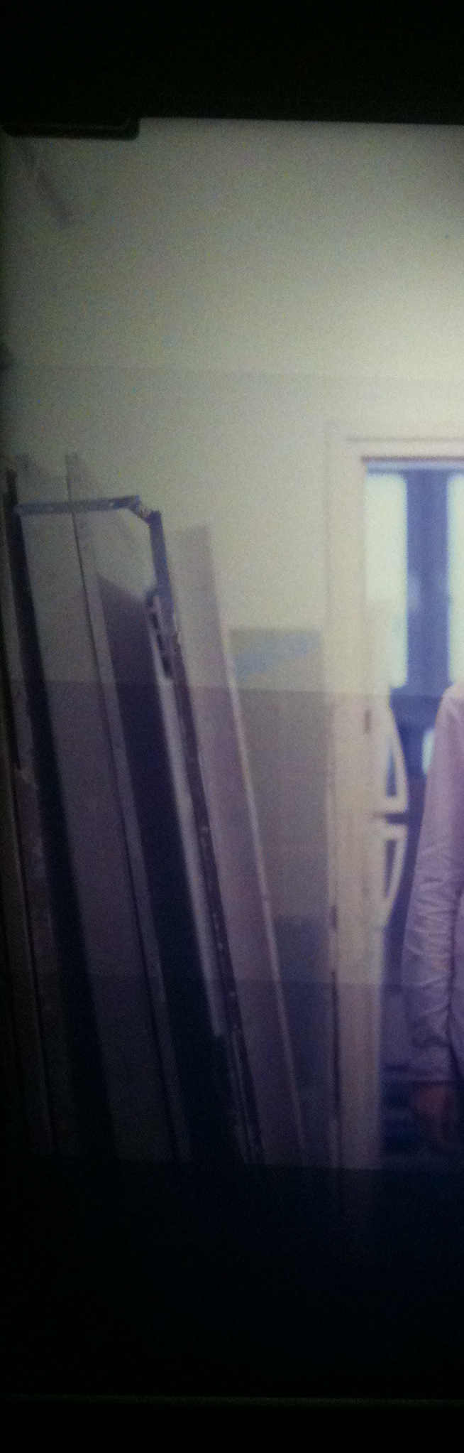 Efekt niżej - paski to szyberek wysłaniający slajd tak by zbadać czułością materiału. Właściwie wyszło, że po 15 latach materiał, który w lodówce raczej nie leżał trzyma swoją światłoczułość rewelacyjnie.