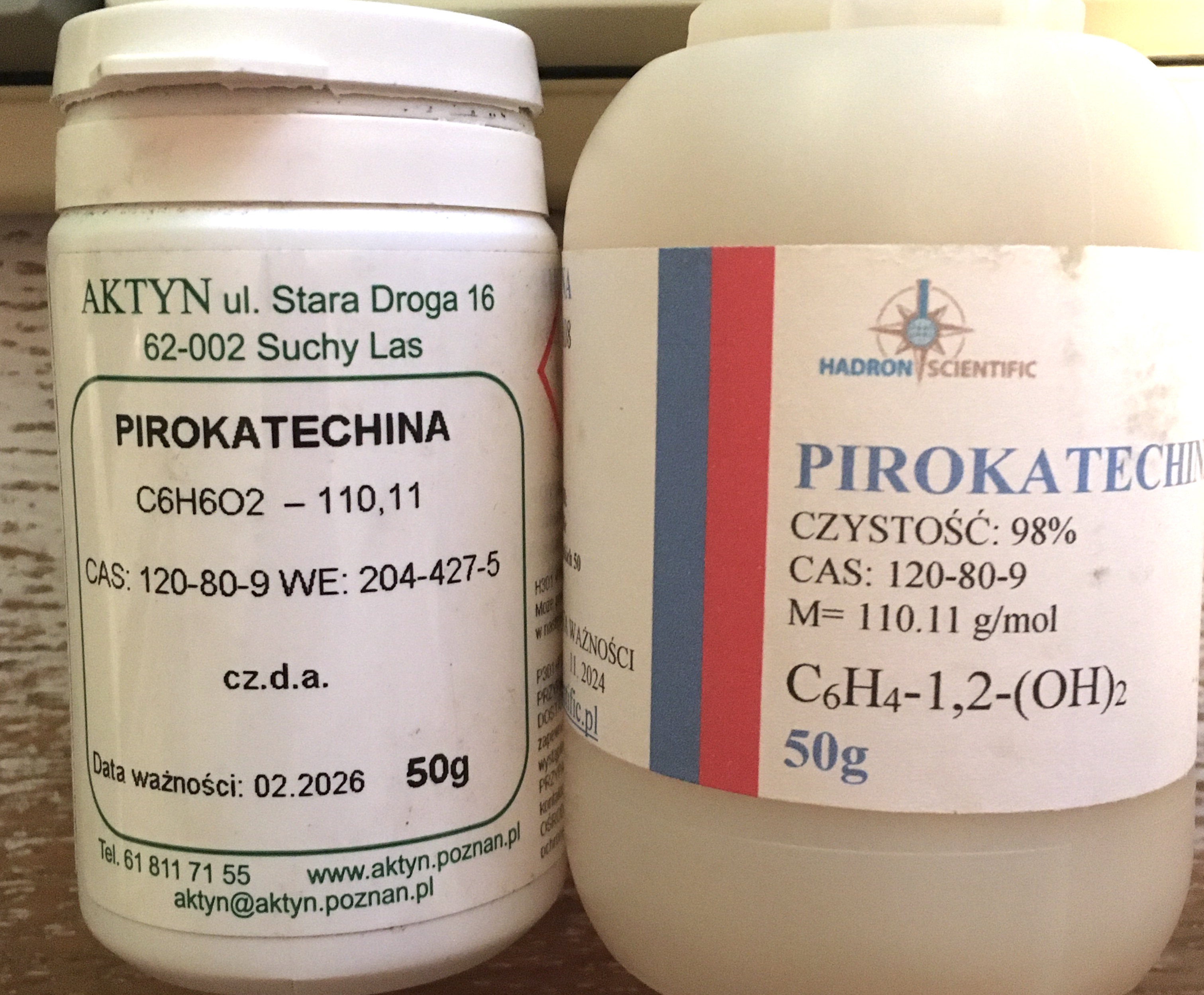 Czysta do analiz pirokatechina kosztuje ponad stówę za gram...